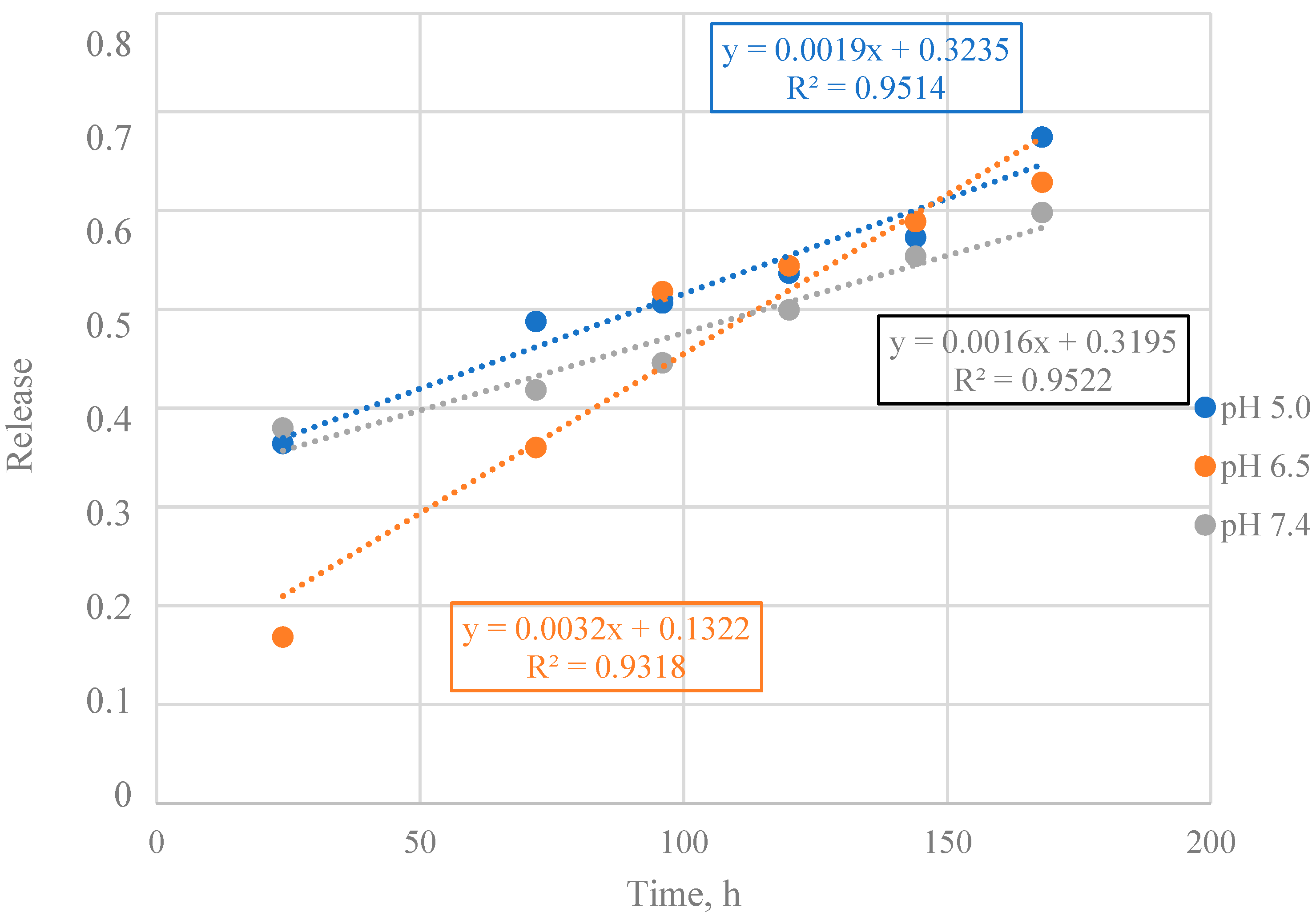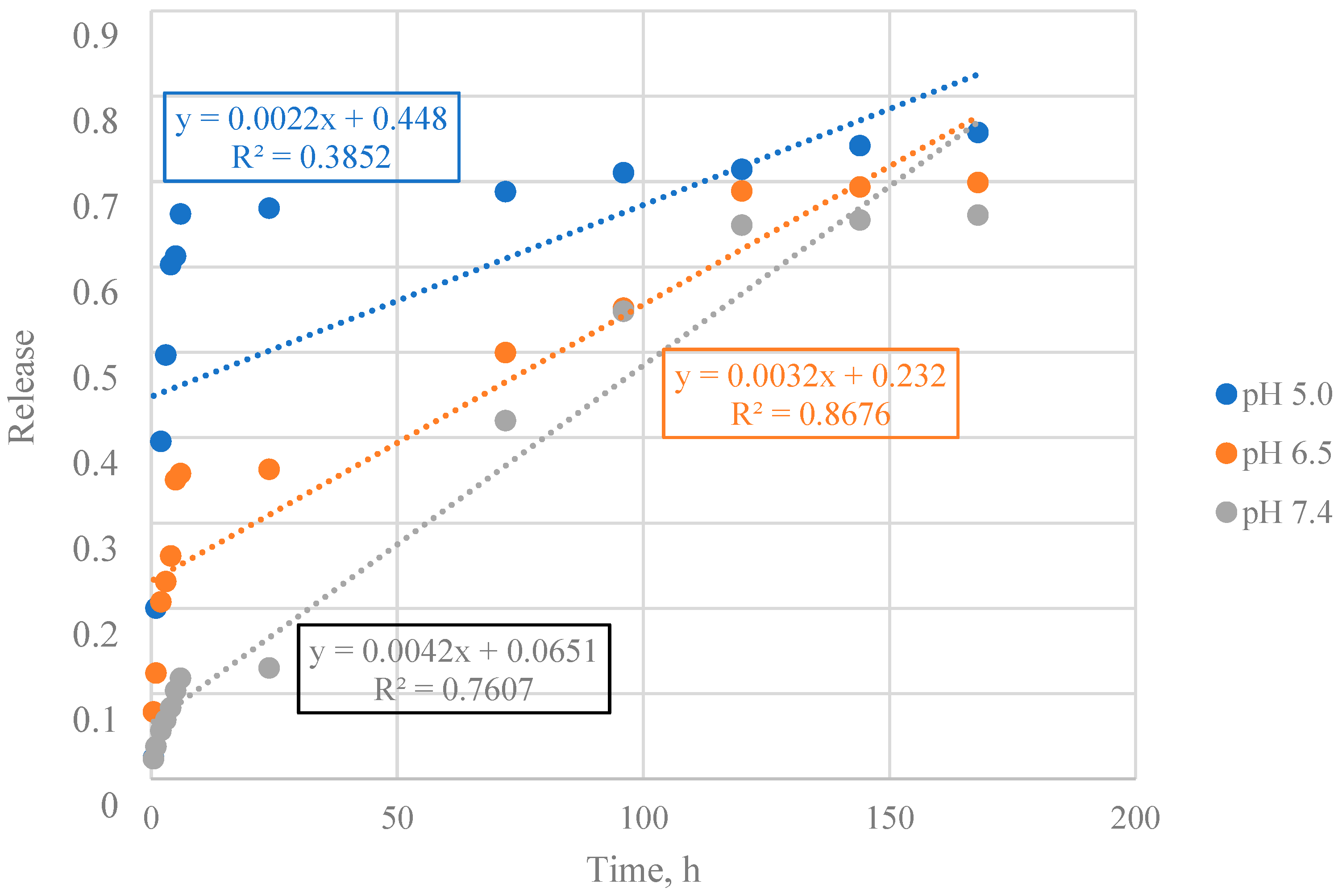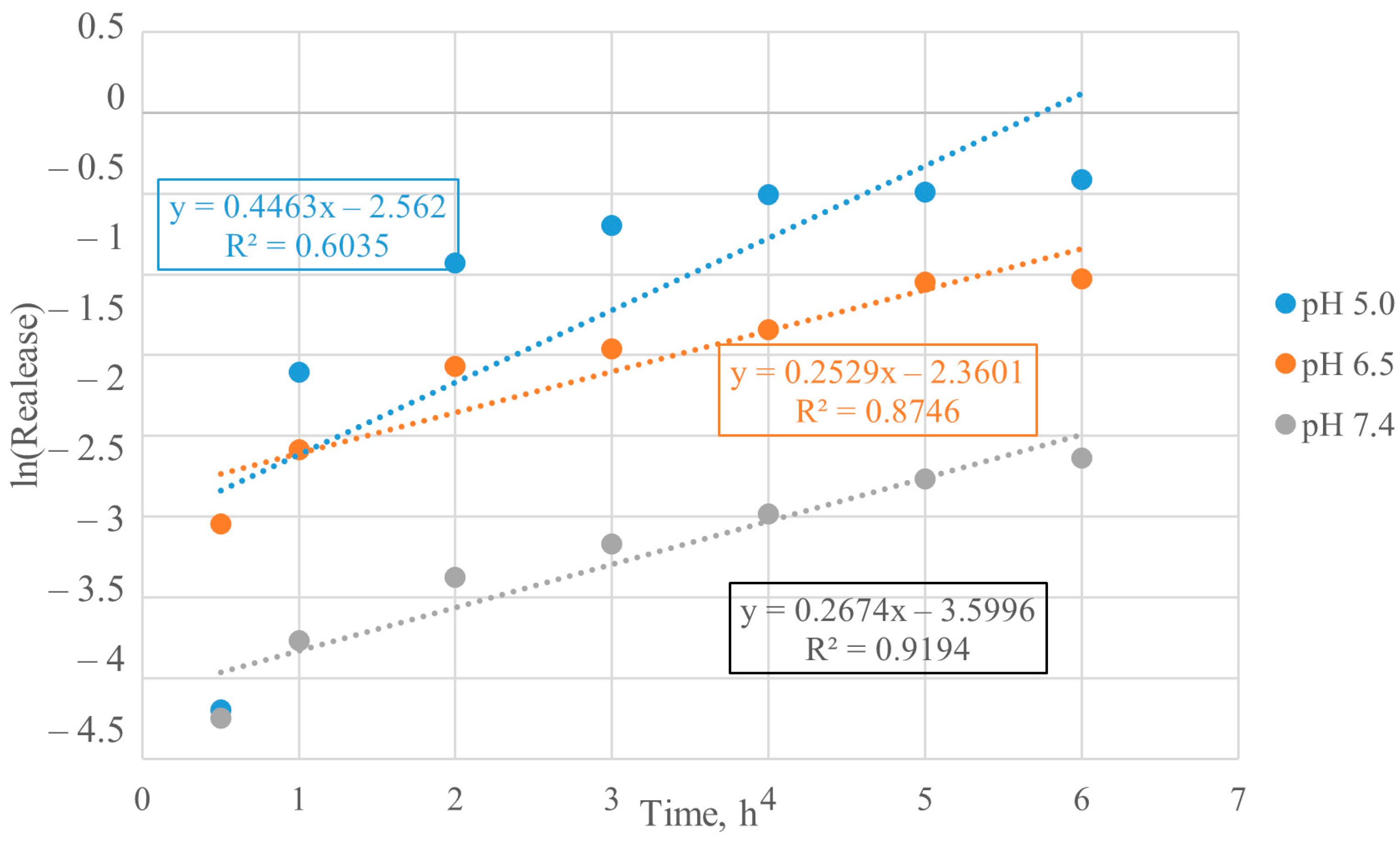 3.5. Calculation of Kinetic Parameters of BSA Release from Particles