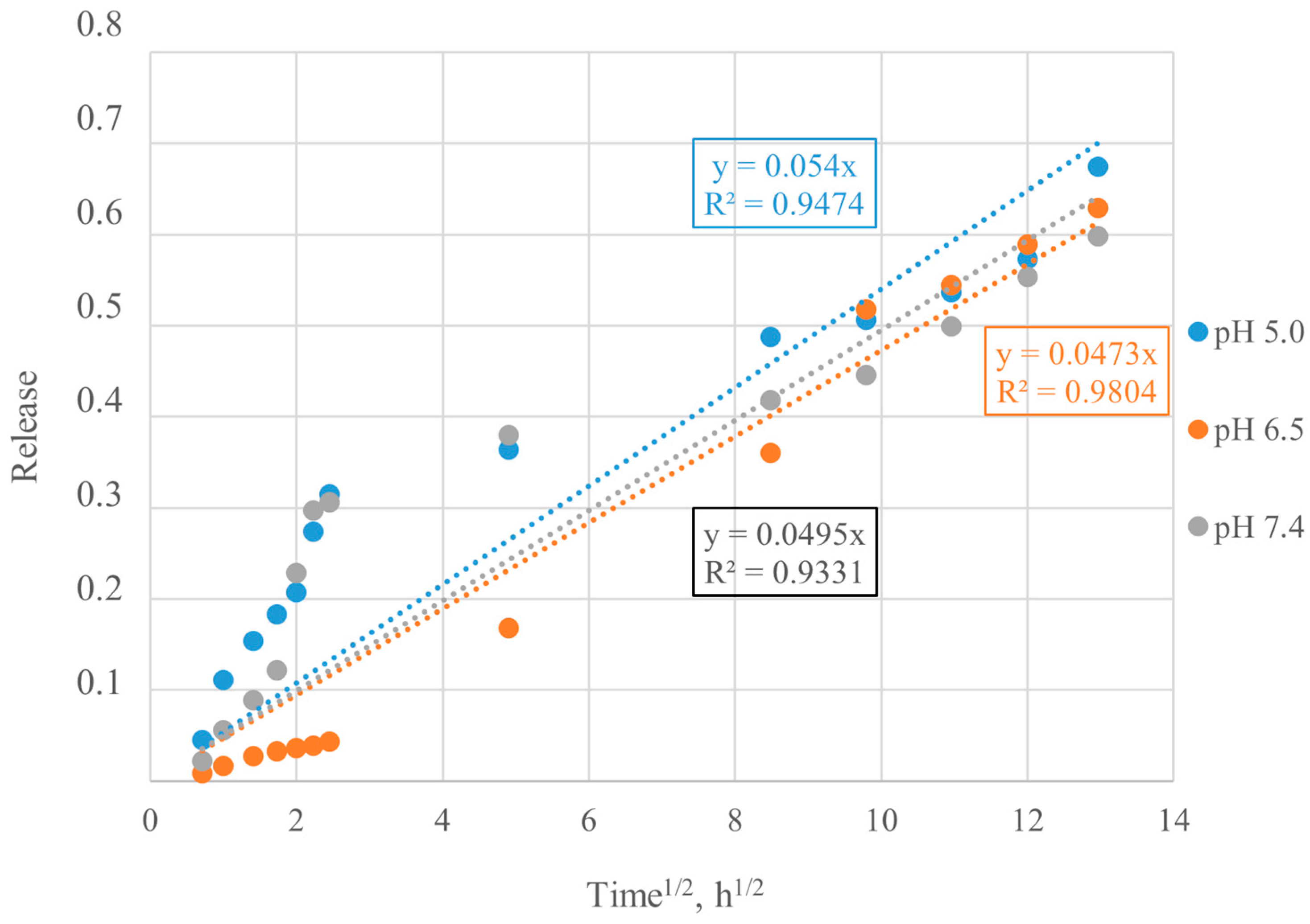 Chemisorbed BSA | 5.0 | 0.3204 | Diffusion from a non-swelling matrix |