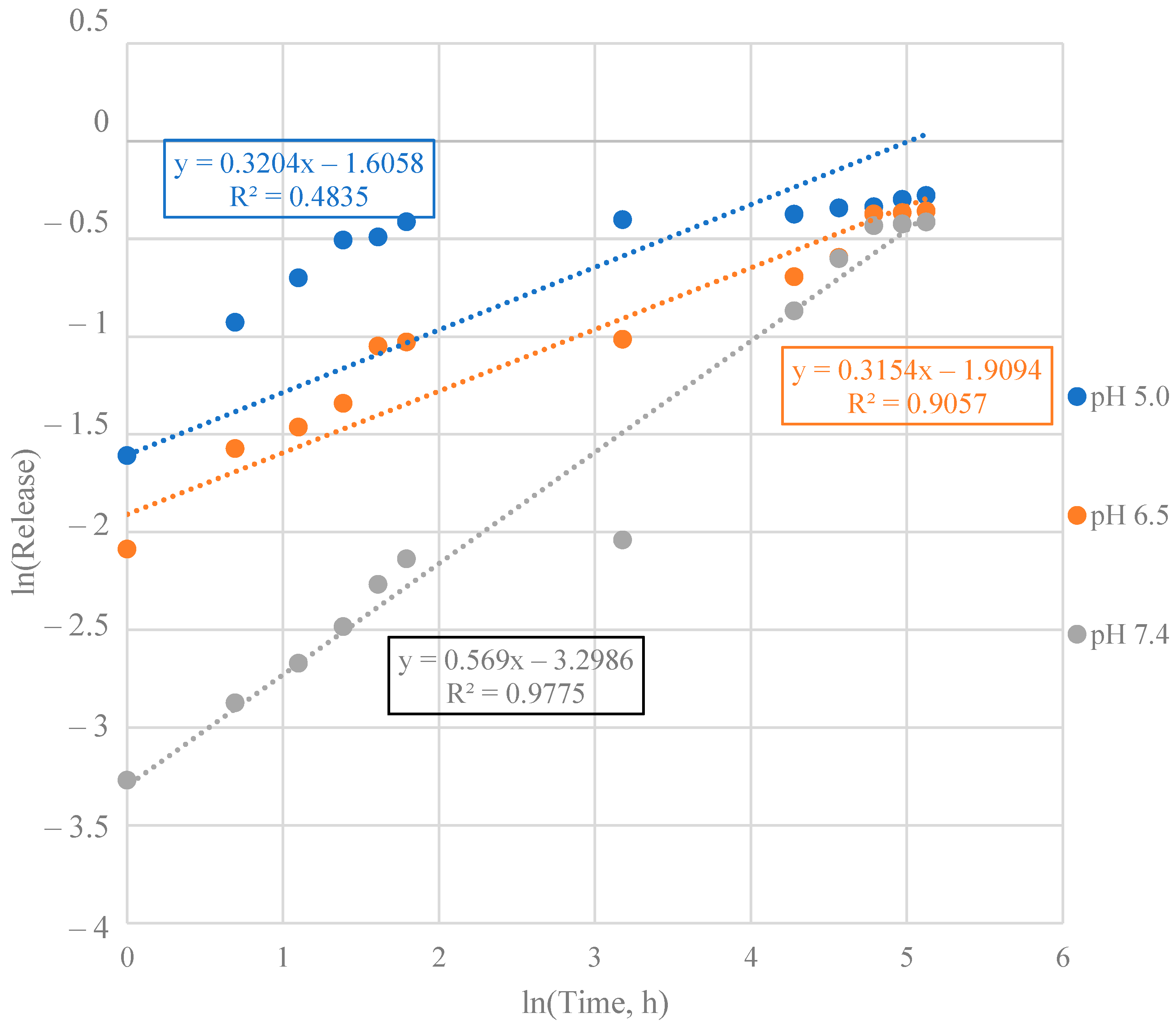 3.4. Mathematical Model Chosen for BSA Release from Particles