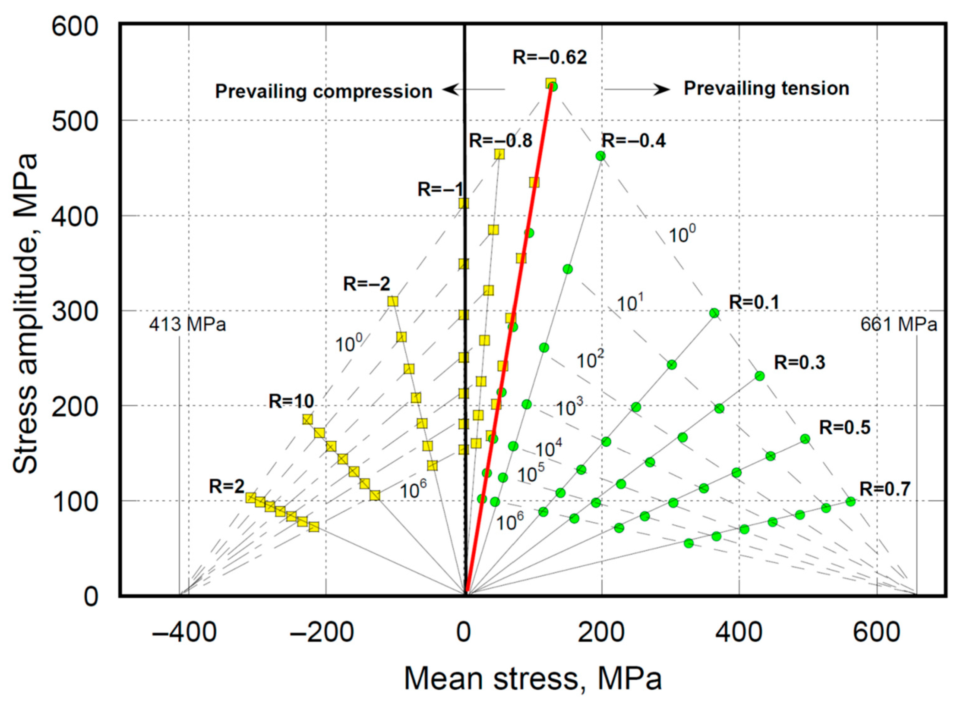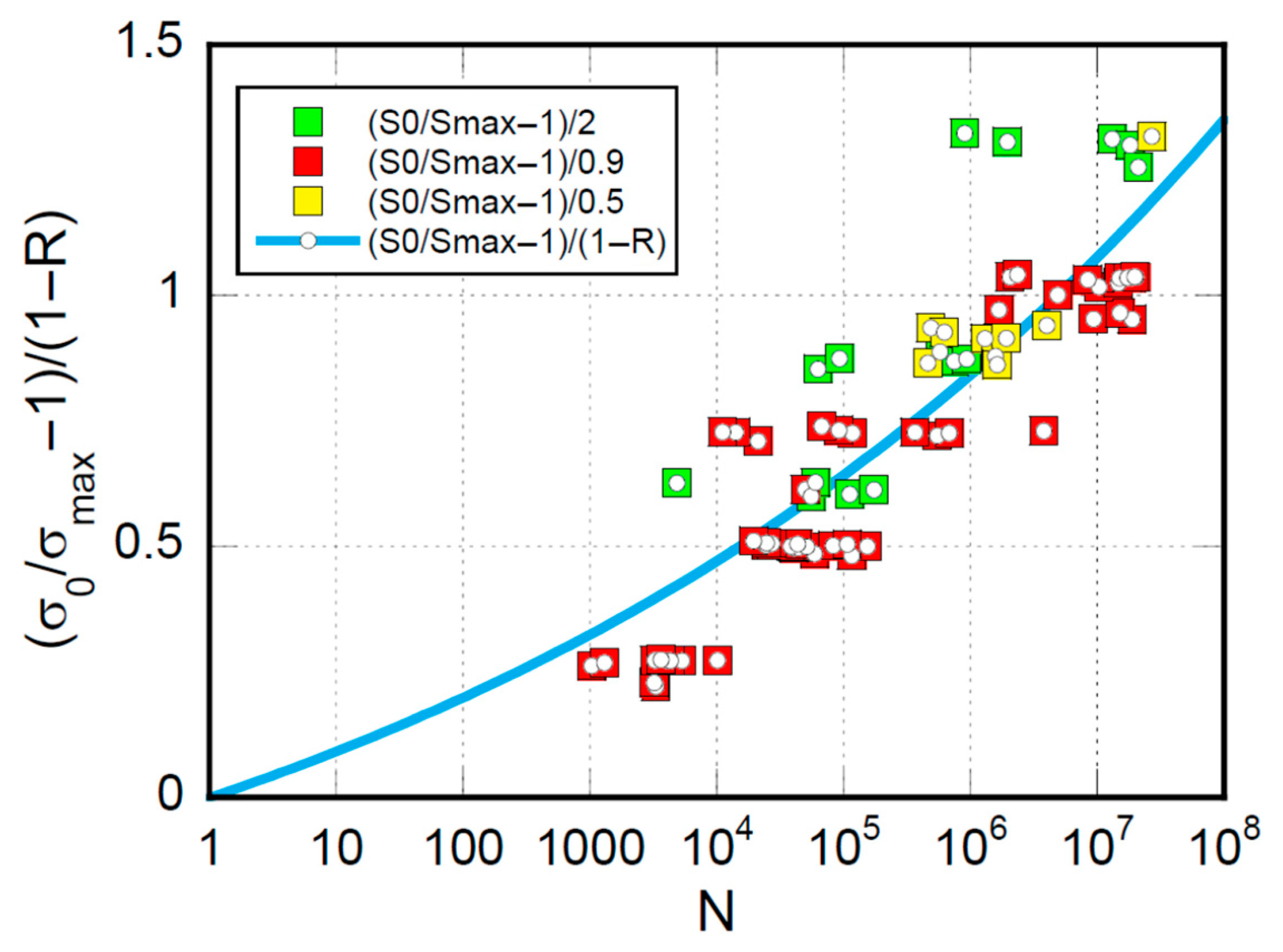 - Kawai, M.; Koizumi, M. Nonlinear constant fatigue life diagrams for carbon/epoxy laminates at room temperature. Compos. Part A 2007, 38, 2342–2353. [Google Scholar] [CrossRef]