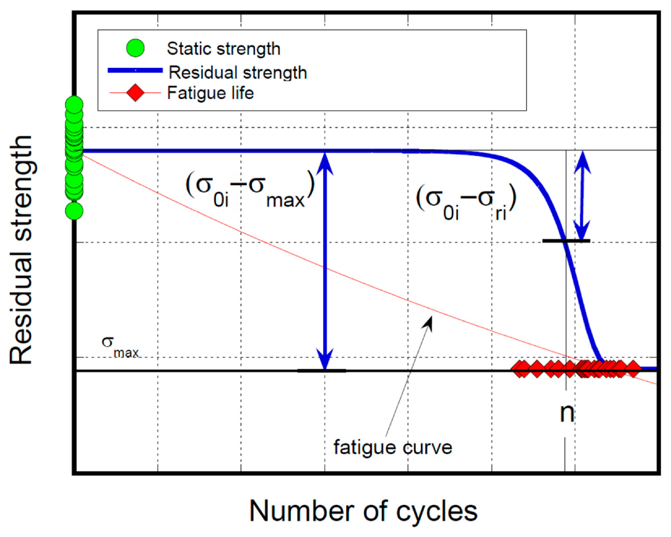 - D’Amore, A.; Grassia, L. Comparative Study of Phenomenological Residual Strength Models for Composite Materials Subjected to Fatigue: Predictions at Constant Amplitude (CA) Loading. Materials 2019, 12, 3398. [Google Scholar] [CrossRef]