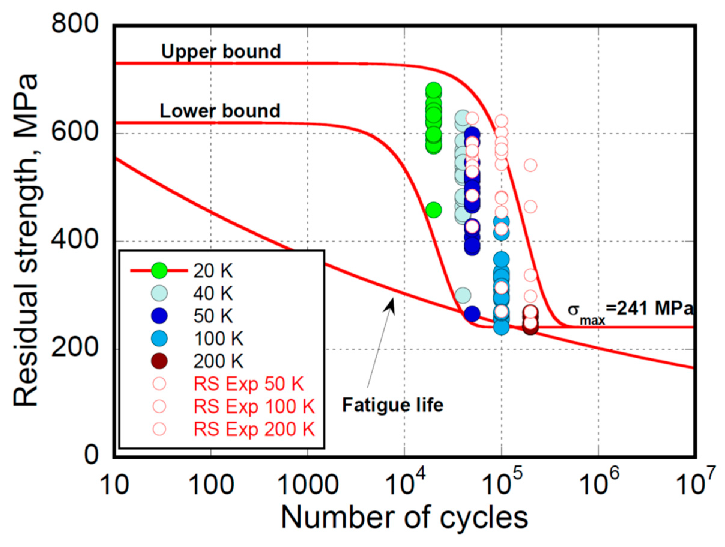 - Philippidis, T.P.; Passipoularidis, V.A. Residual strength after fatigue in composites: Theory vs. experiment. Int. J. Fatigue 2007, 29, 2104–2116. [Google Scholar] [CrossRef]