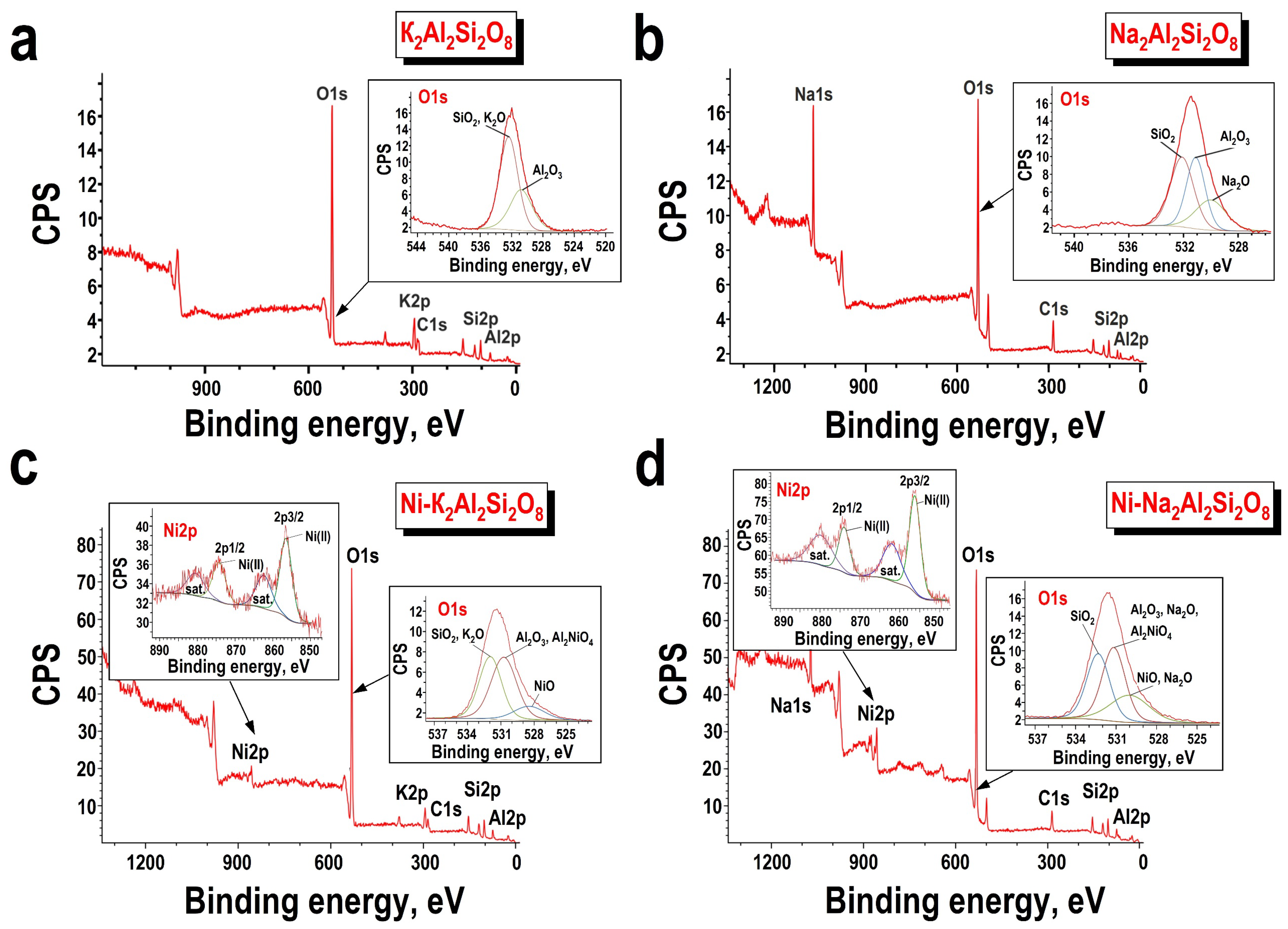 Al2O3, Al2NiO4 | 530.7 eV | 530.9 eV | 530.9 eV | 530.7 eV | |
