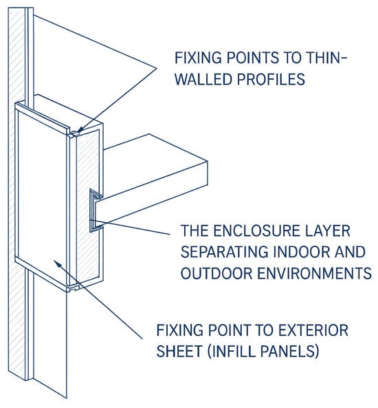 Figure 1 illustrates the most commonly used fixing points on the façade—the supporting frame and the various infill panels.