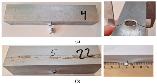 A description of the selected object of investigation is shown in Figure 4. In total, five samples are considered in the study, with one sample featuring an aluminium rivet and four samples featuring stainless steel rivets.