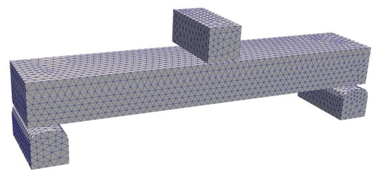 A non-linear finite element model was implemented within the Versim4D platform. Concrete and timber were modelled as solid 10-node tetrahedron finite elements (Figure 6). A non-linear cohesive zone element was used to model the interface between timber and concrete. Based on previous research of plywood and CLT slabs [,,], plywood can be effectively modelled as a tailored damage plasticity model for timber. Similarly, for concrete or fibre–concrete, previous research [,] reveals that the damage plasticity model is one of the most appropriate for this case.