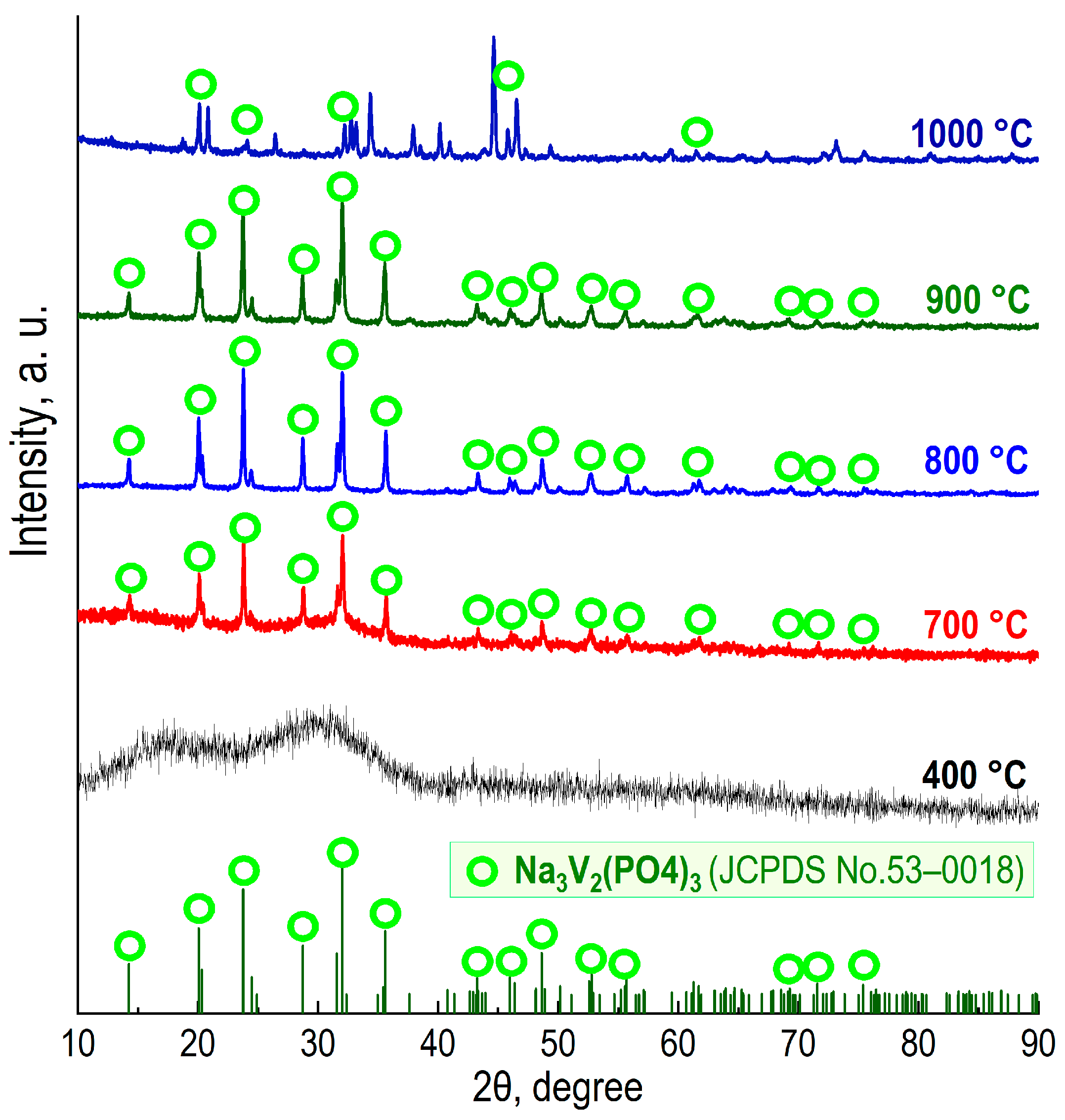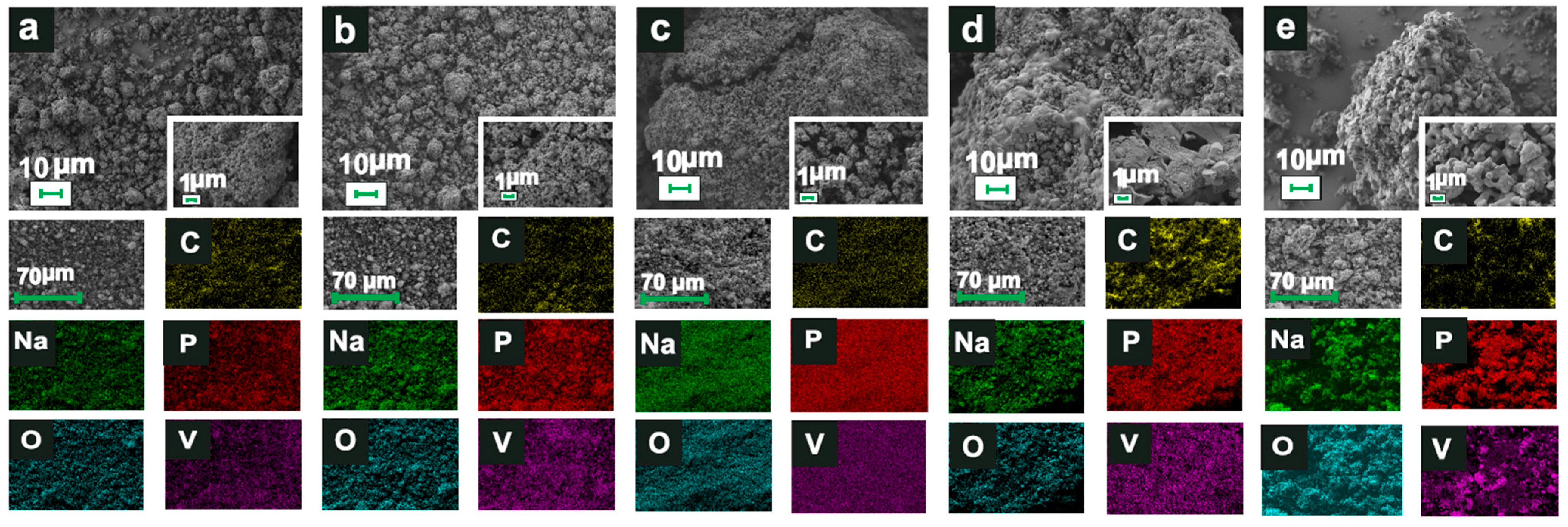 - Ding, X.; Huang, X.; Zhou, S.; Xiao, A.; Chen, Y.; Zuo, C.; Jin, J. Synthesis of Na3V2 (PO4)3/C composites as high-performance cathode materials for sodium ion batteries. Int. J. Electrochem. Sci. 2019, 14, 2815–2821. [Google Scholar] [CrossRef]