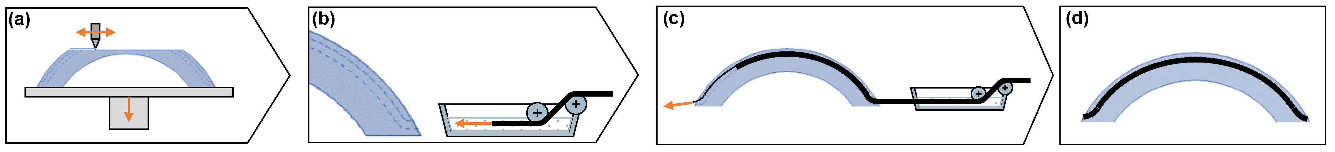 - Chauvette, J.-F.; Hia, I.L.; Pierre, J.; Chenier, G.; Farahani, R.D.; Piccirelli, N.; Therriault, D. Non-Planar Multiprocess Additive Manufacturing of Multifunctional Composites. Adv. Mater. Technol. 2023, 8, 2300399. [Google Scholar] [CrossRef]