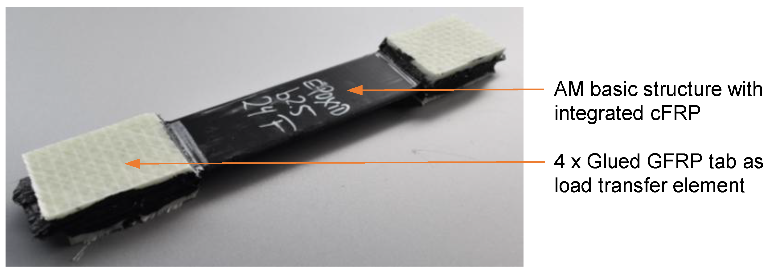 - Meißner, S.; Kafka, J.; Isermann, H.; Labisch, S.; Kesel, A.; Eberhardt, O.; Kuolt, H.; Scholz, S.; Kalisch, D.; Müller, S.; et al. Development and Evaluation of a Novel Method for Reinforcing Additively Manufactured Polymer Structures with Continuous Fiber Composites. J. Compos. Sci. 2024, 8, 272. [Google Scholar] [CrossRef]
