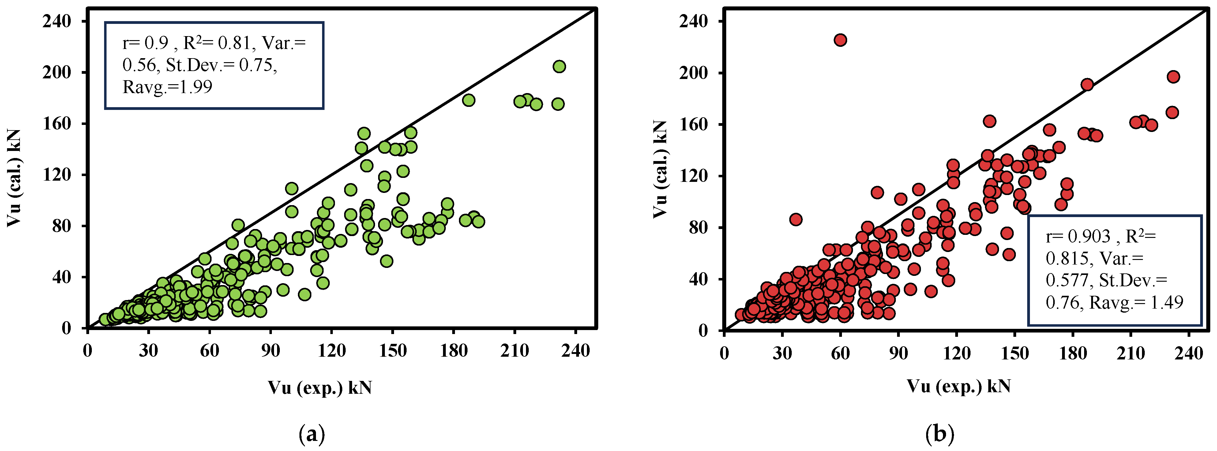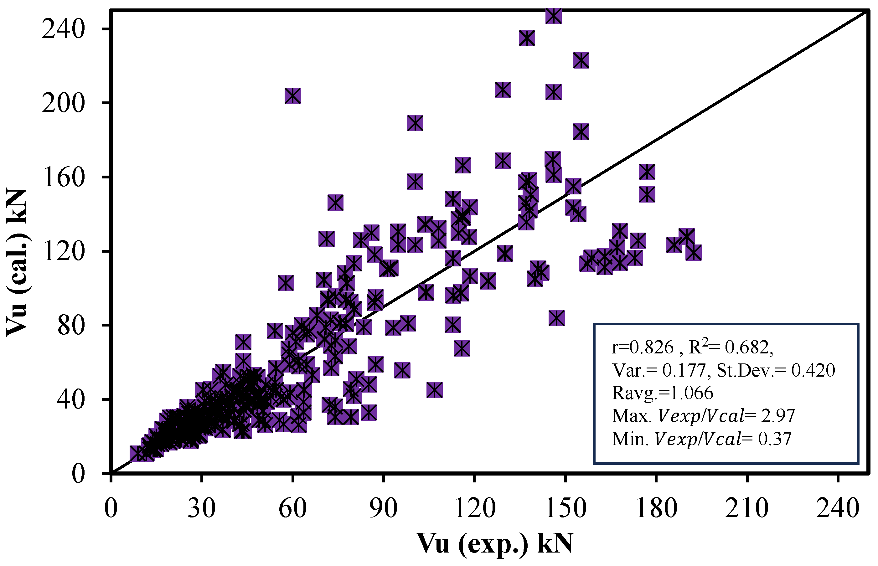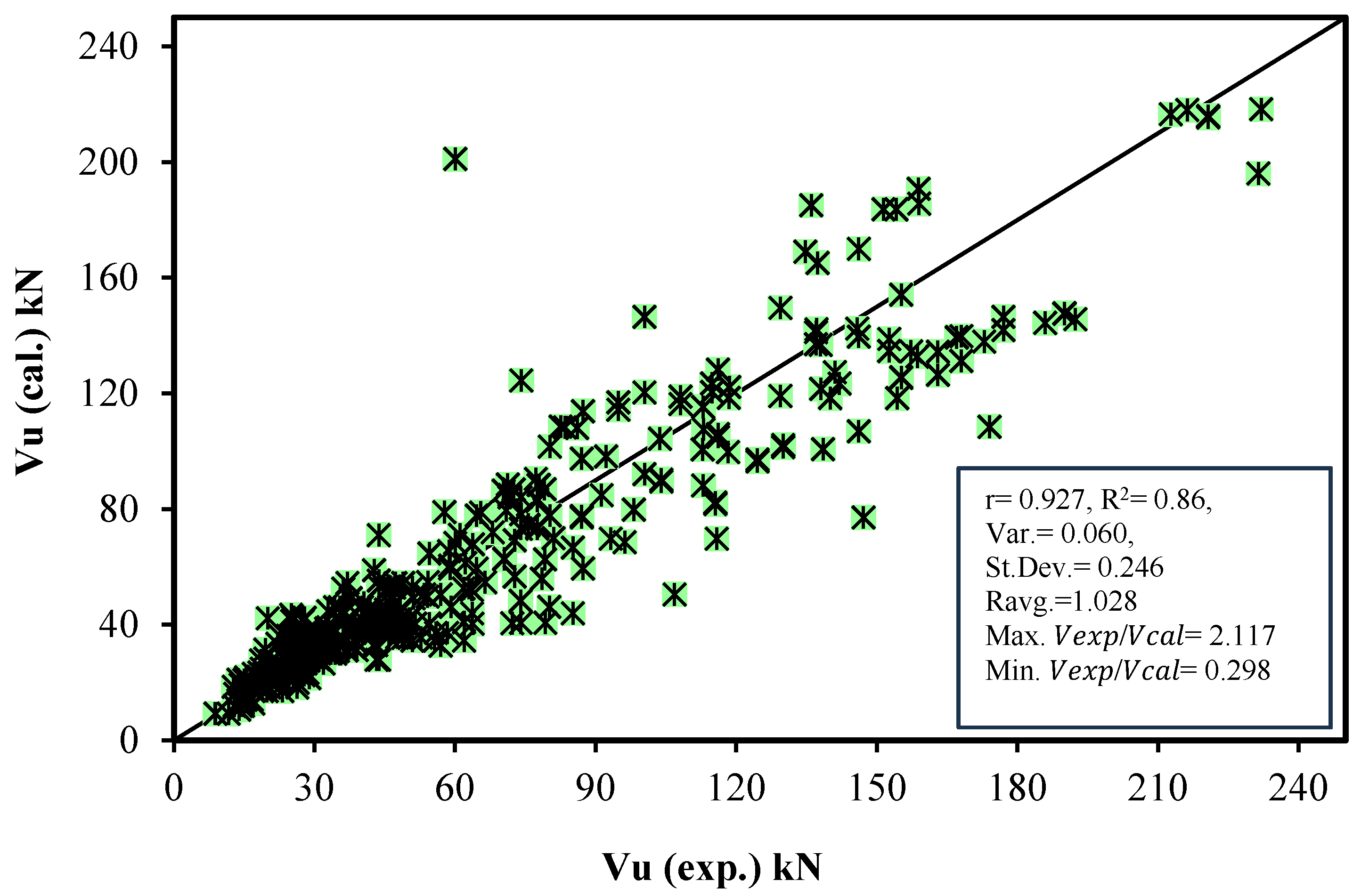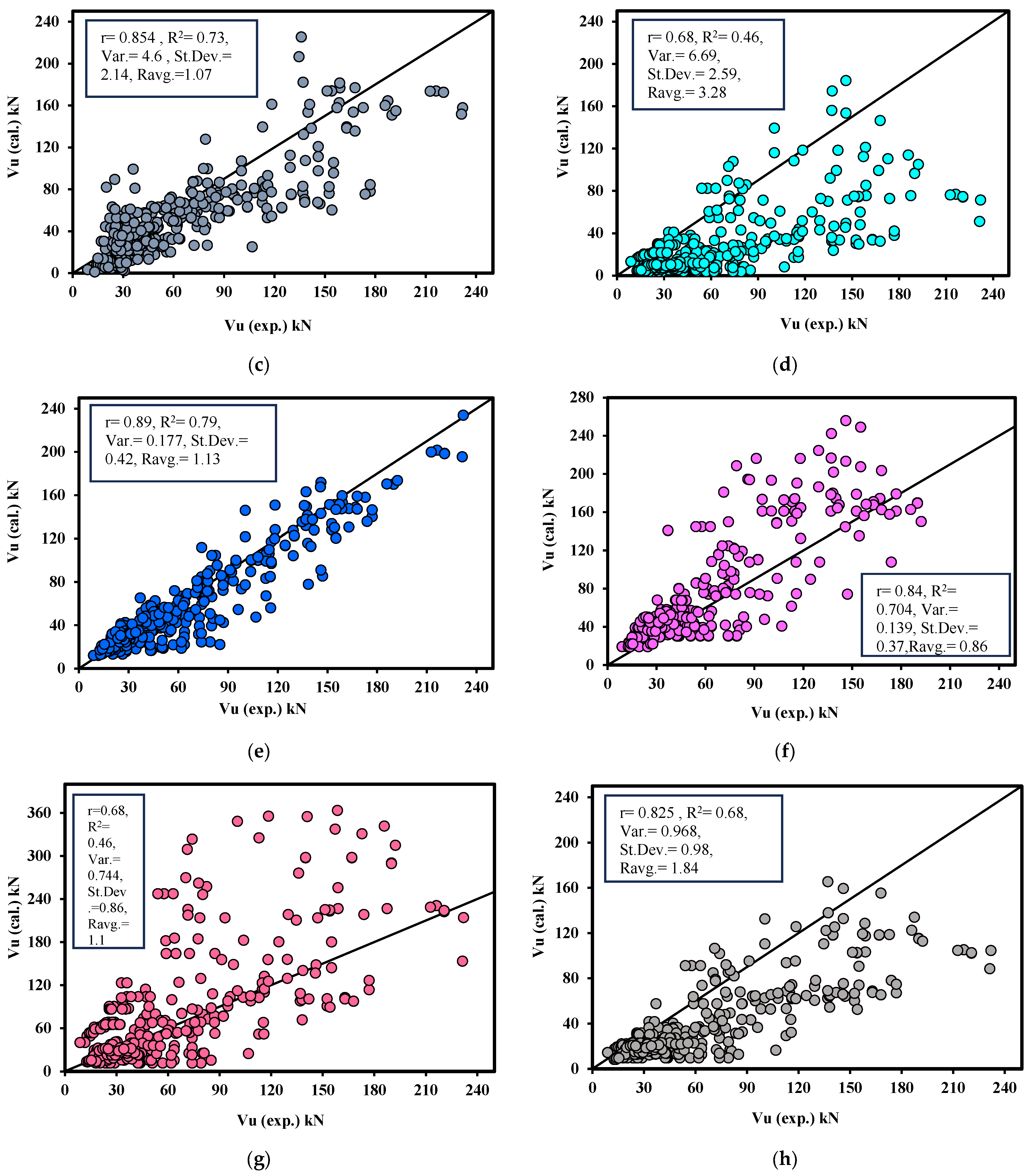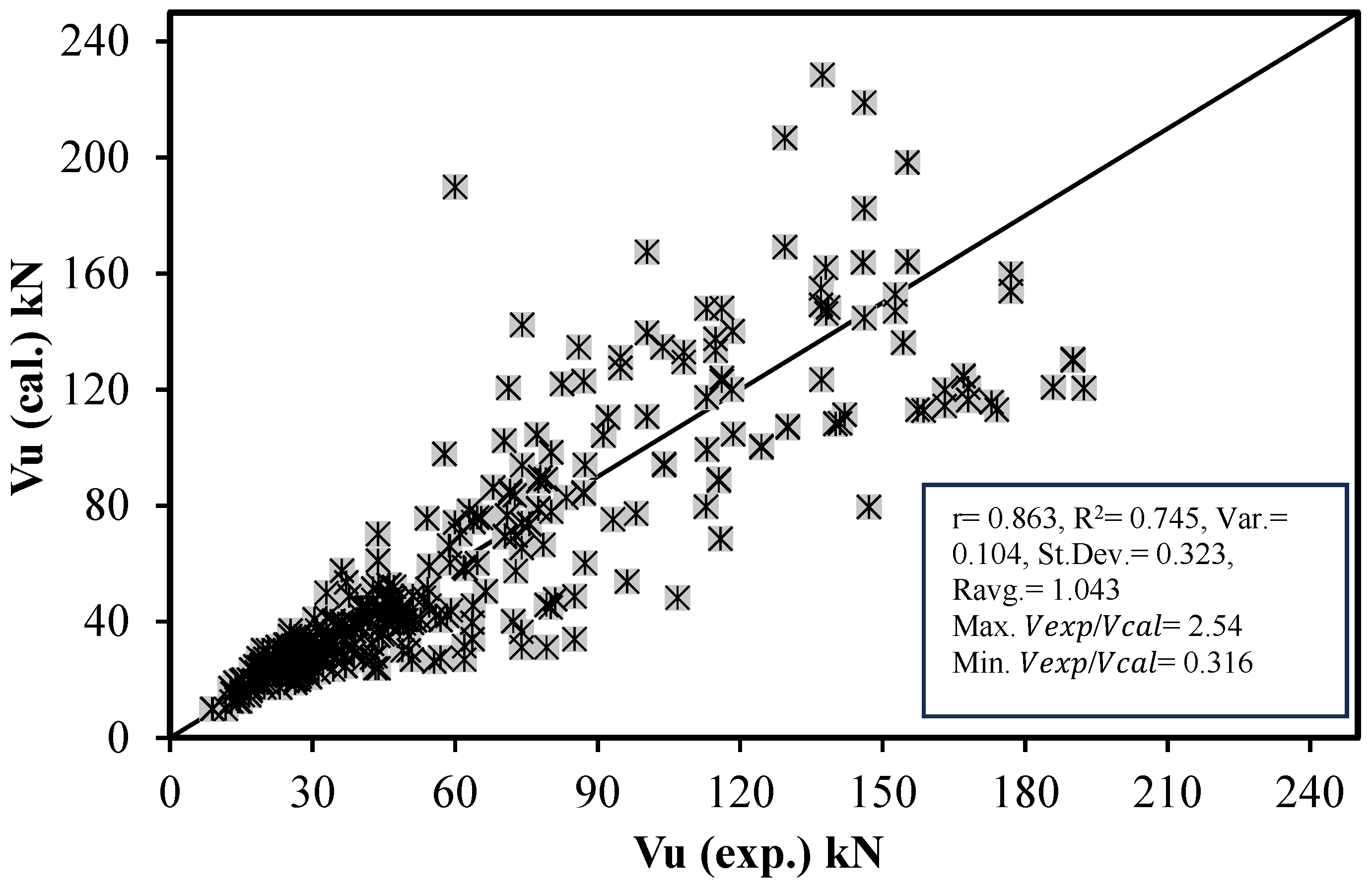 - Comparison with Existing Models: The predicted results from the proposed models are compared with 15 existing models from codes, standards, and literature to evaluate their accuracy and correlation with experimental data.