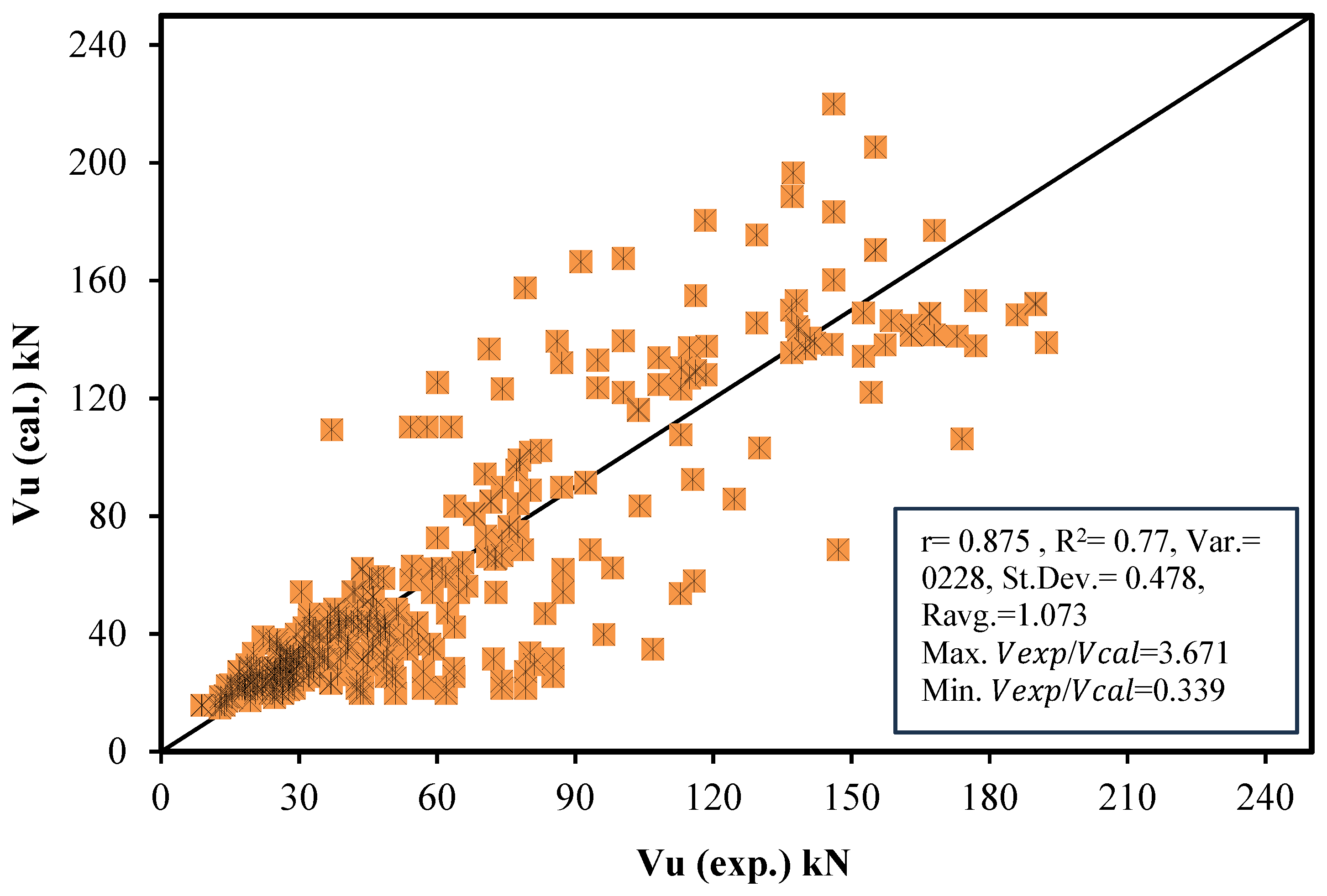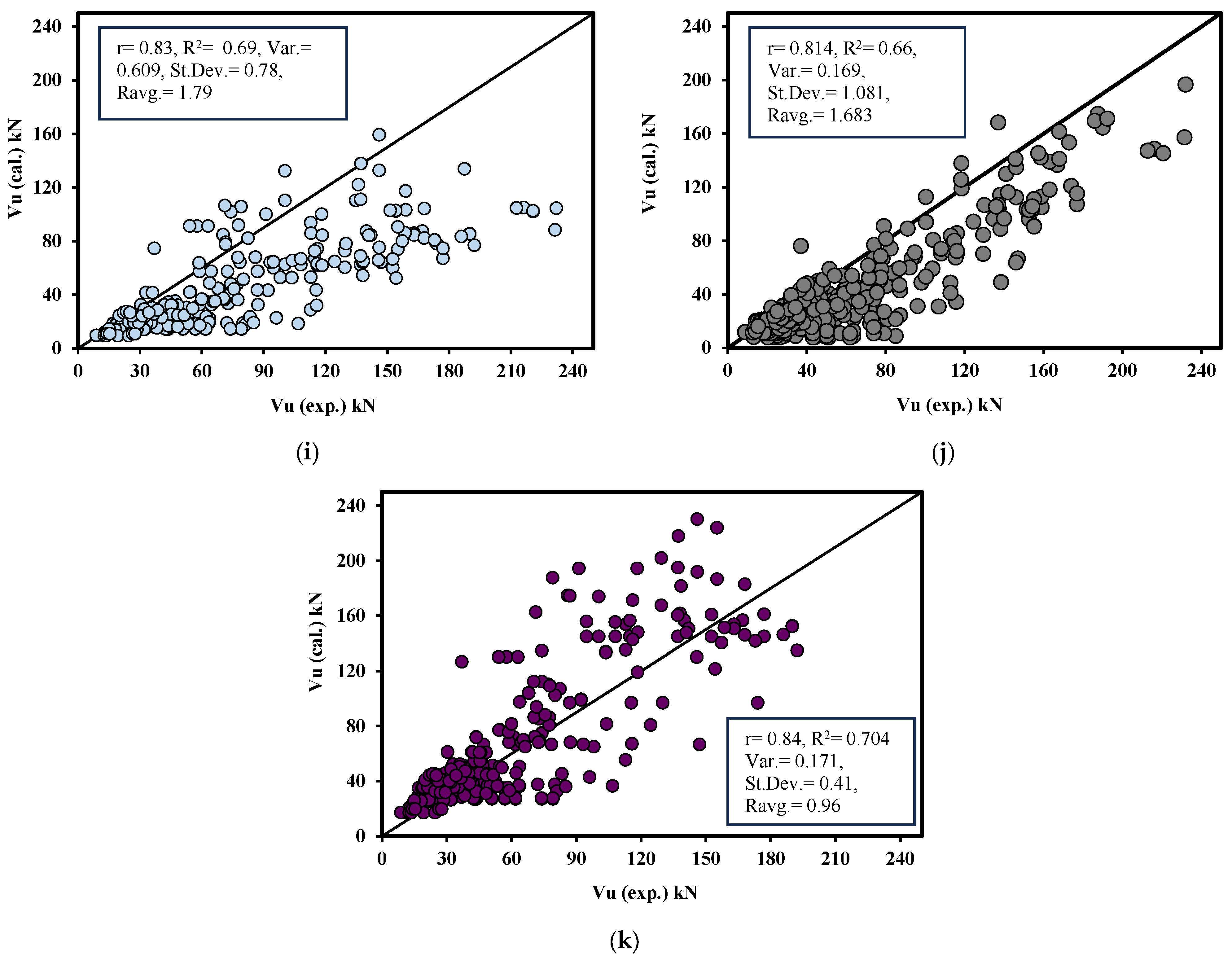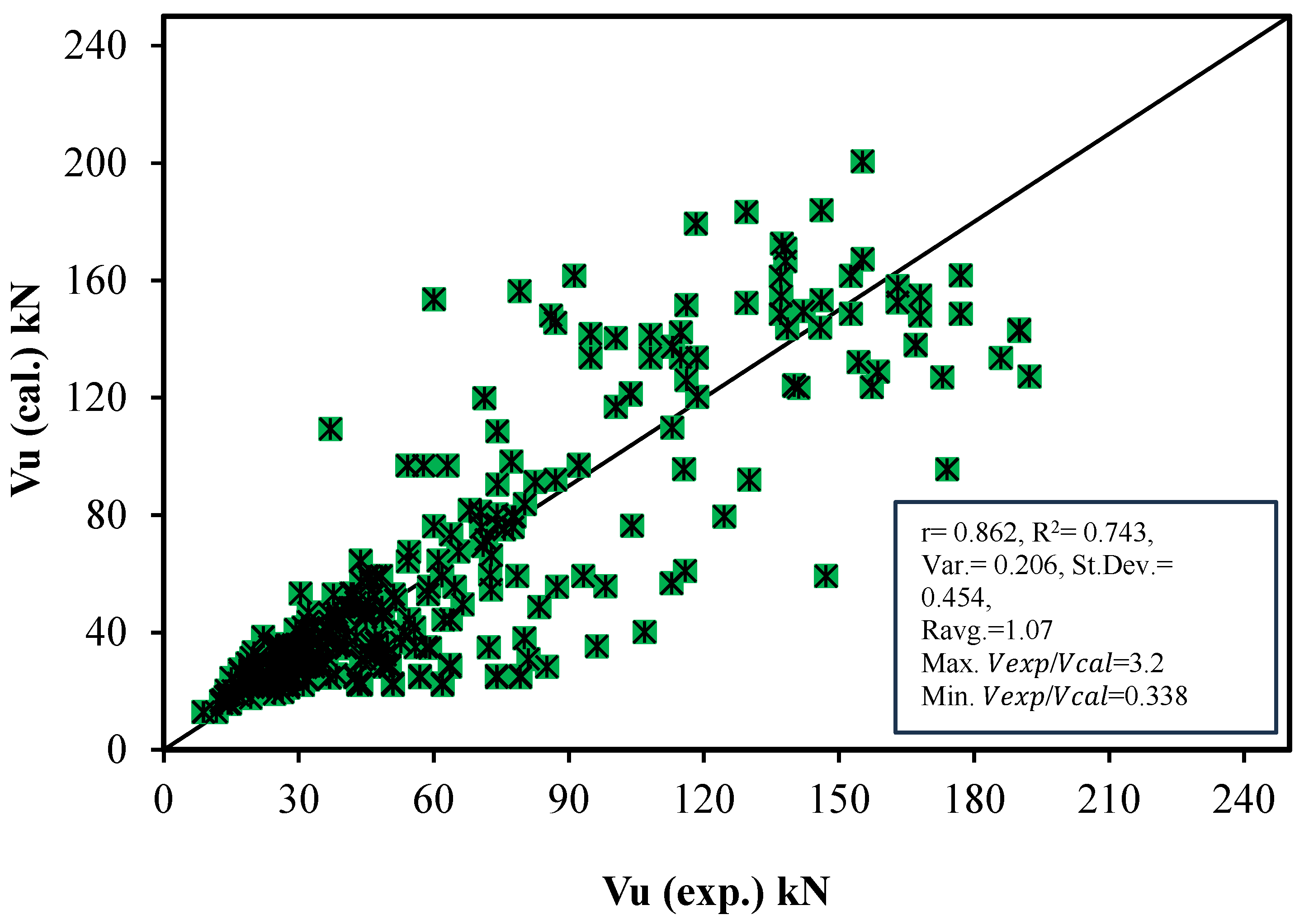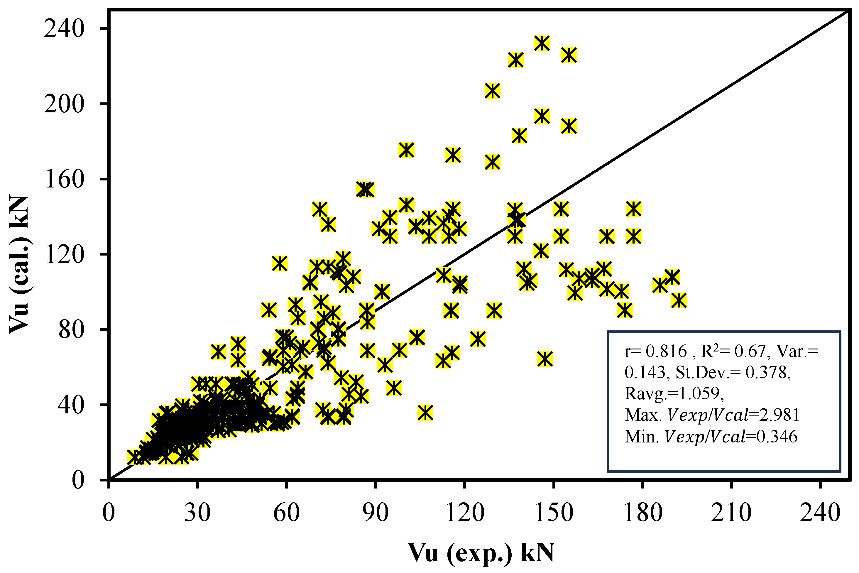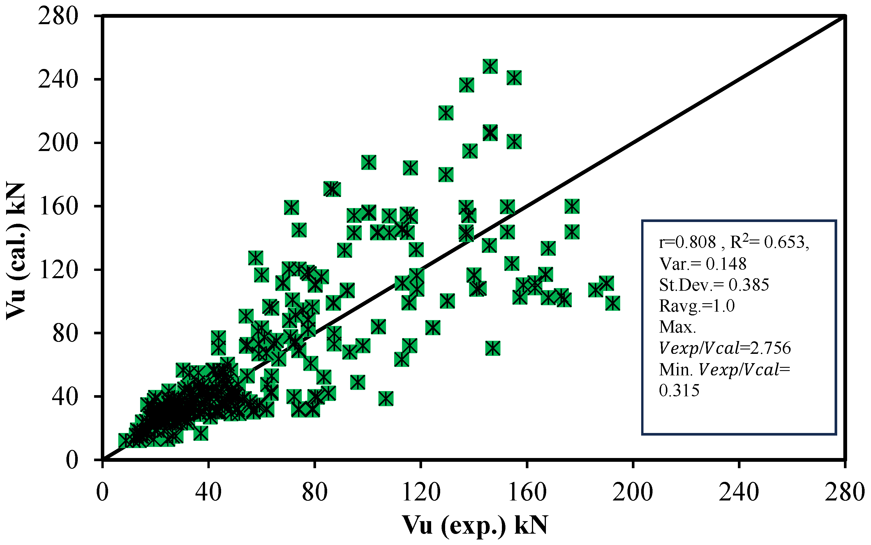 - Comparison with Existing Models: The predicted results from the proposed models are compared with 15 existing models from codes, standards, and literature to evaluate their accuracy and correlation with experimental data.