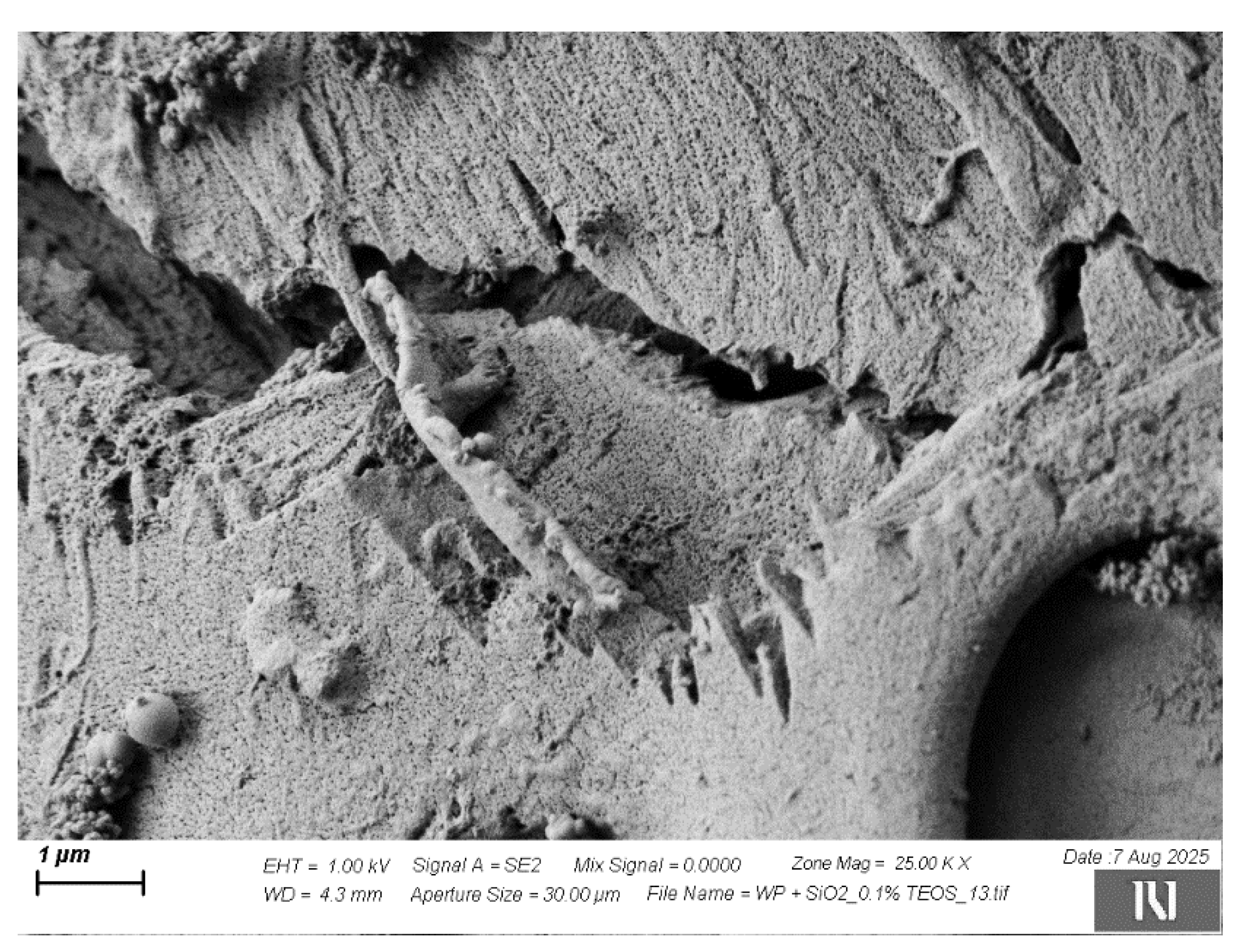 | 0.2% TEOS | 316 ± 4 | 326 ± 3 | 363 ± 2 | 254.8 ± 1 | 322.0 ± 7 | 2.8 ± 2 |