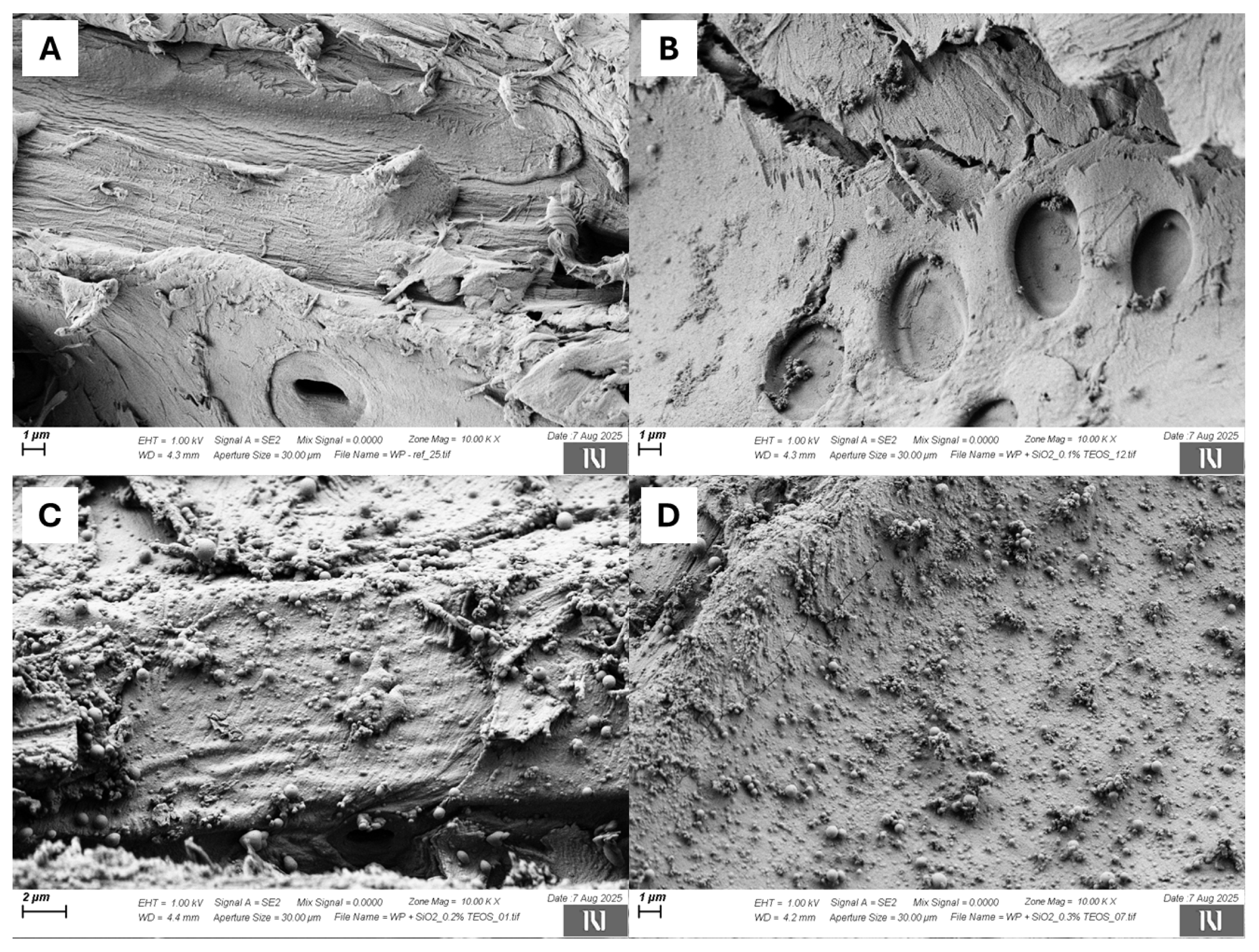 - Lazari, M.; Elmi, F. Structural Study of Coated Wood with Superhydrophobic Chitosan/Silica Hybrid Nanocomposite in Seawater. Prog. Org. Coat. 2024, 186, 108076. [Google Scholar] [CrossRef]