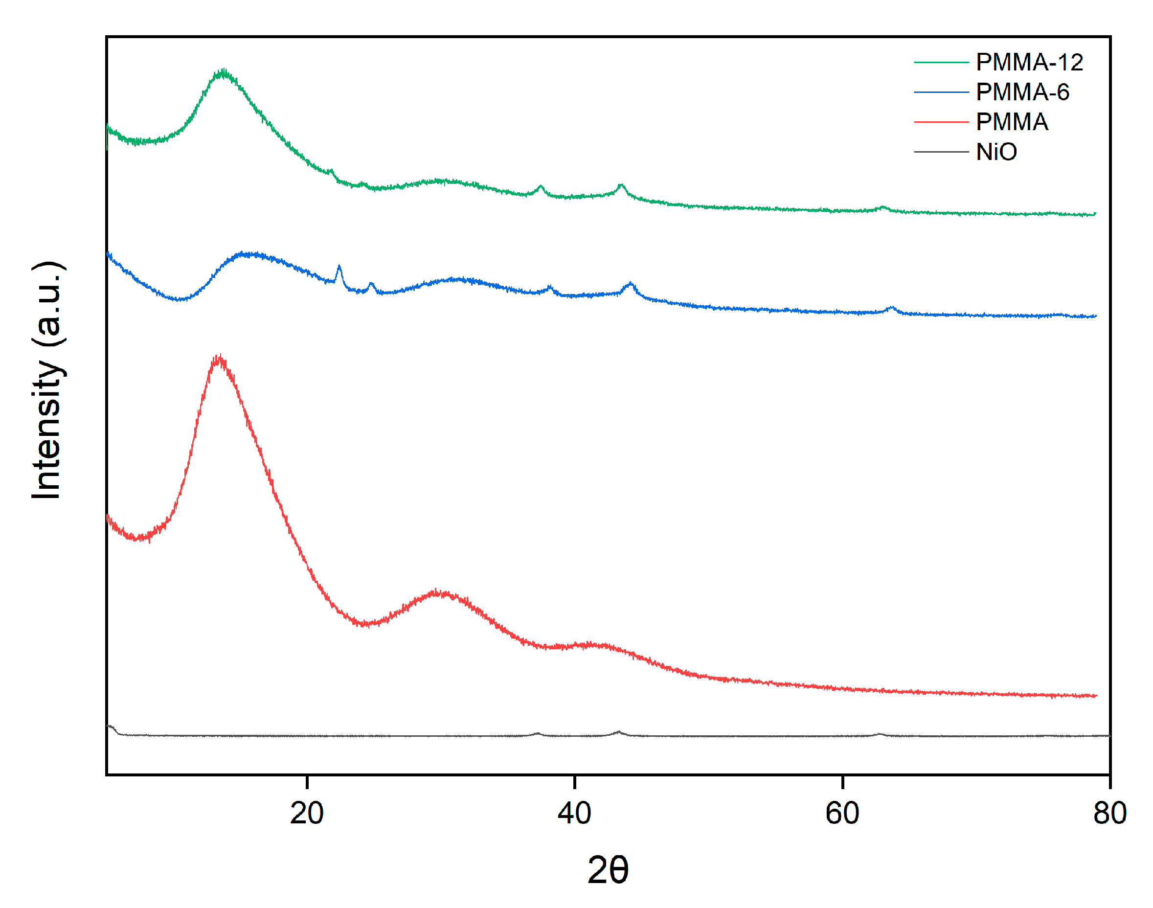 - Soleimani, E.; Niavarzi, F.B. Preparation, Characterization and Properties of PMMA/NiO Polymer Nanocomposites. J. Mater. Sci. Mater. Electron. 2018, 29, 2392–2405. [Google Scholar] [CrossRef]
