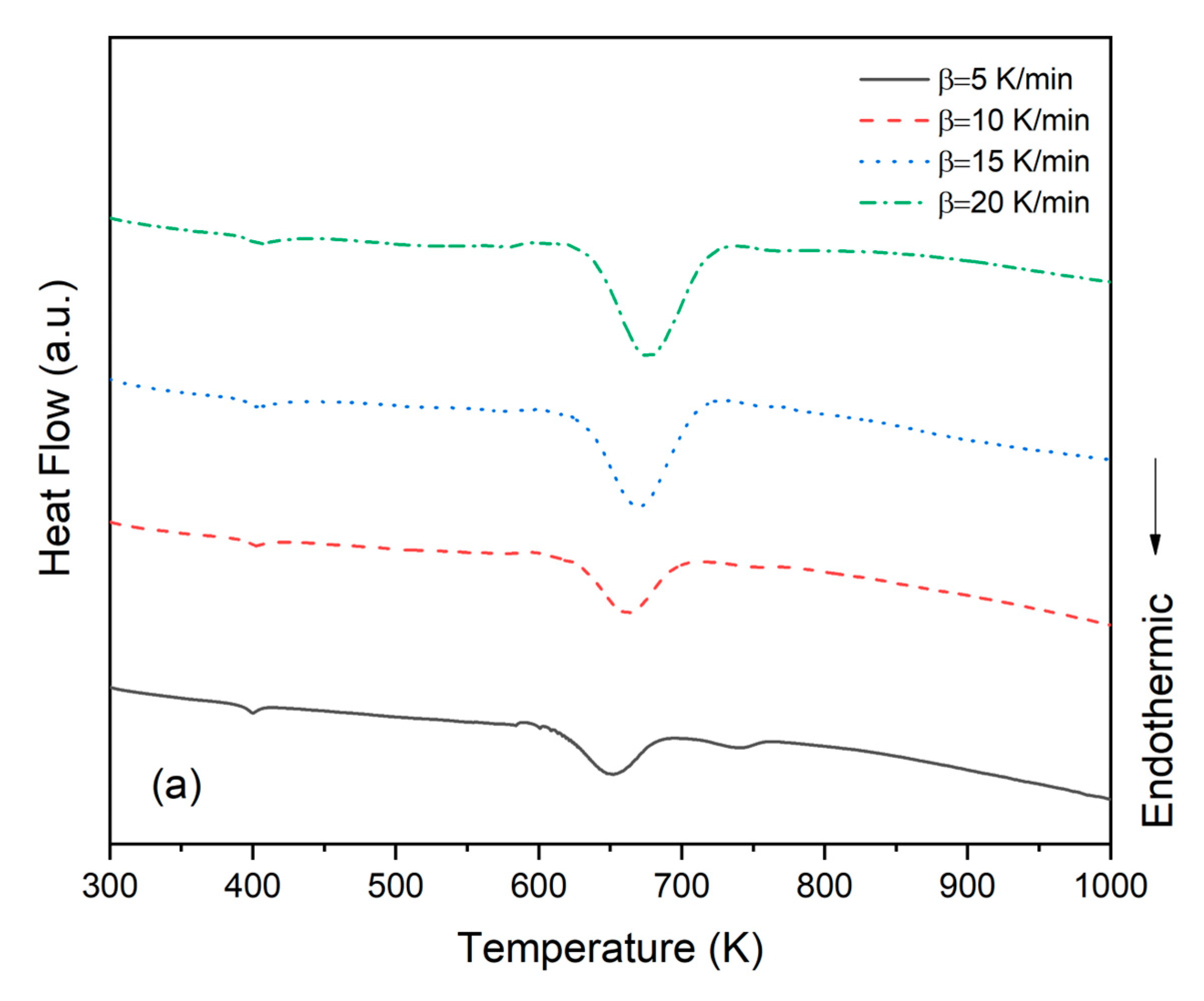 - Kissinger, H.E. Variation of Peak Temperature with Heating Rate in Differential Thermal Analysis. J. Res. Natl. Bur. Stand. (1934) 1956, 57, 217. [Google Scholar] [CrossRef]