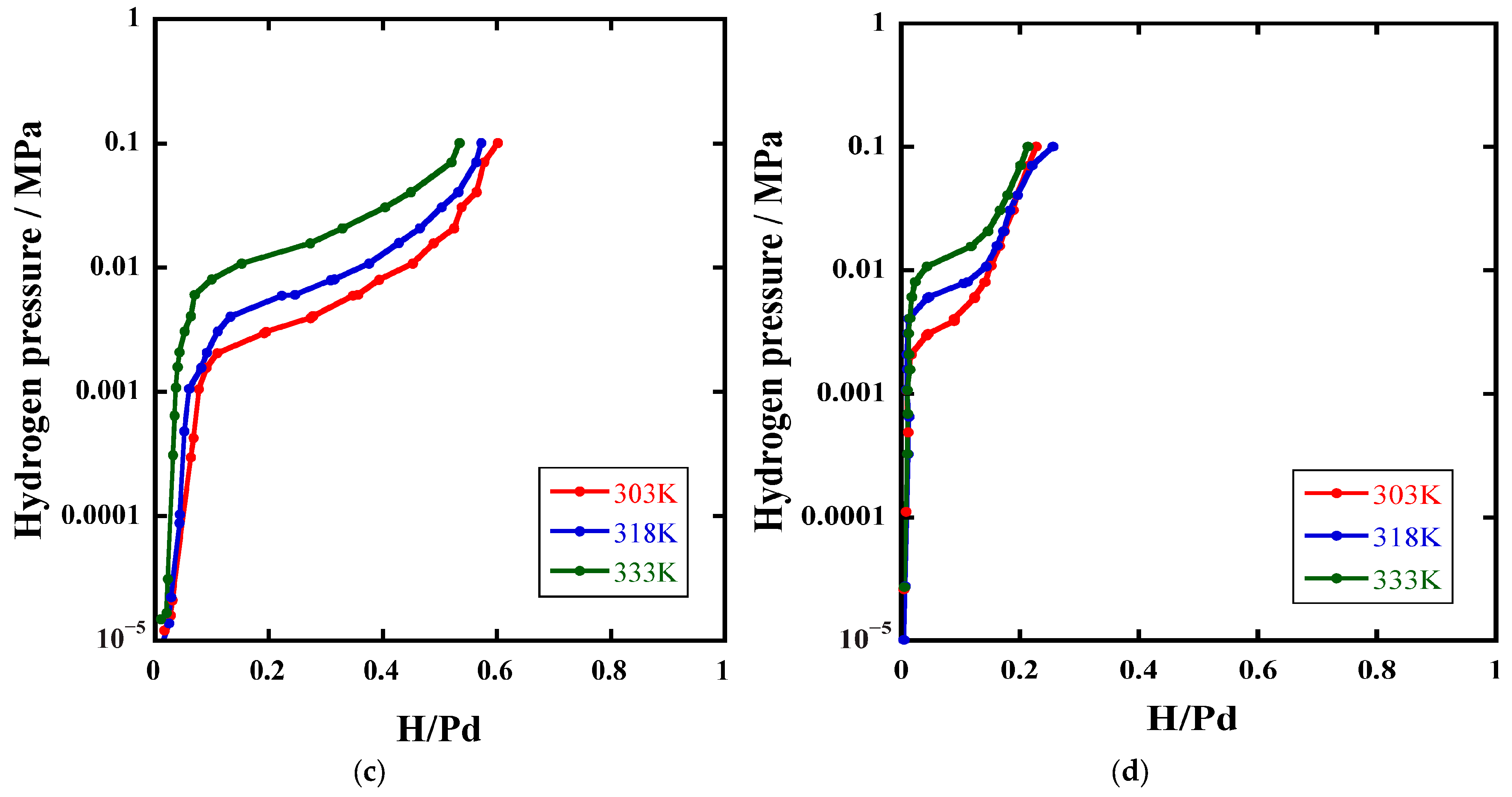 - The PCT isotherms of the composites exhibited the characteristic hydrogen absorption behaviors. In the equilibrium absorption process, the amount of the stored H2 reaches its maximum of H/Pd = 0.61 in the composite prepared at 600 °C. The ΔH° of approximately 38 kJ/mol was for the hydride formation reaction.