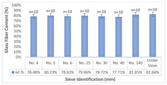 The glass fiber content in sieved EPGs.