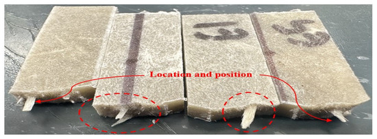 Flexural properties of STC specimens were evaluated by three-point bending tests in accordance with ASTM D7264 [27]. Test specimens measured 127 mm × 12.7 mm (length × width); the thickness was recorded for each specimen. A span-to-depth ratio of 16 was employed (support span: 64 mm). The crosshead speed was set to 1.7 mm/min. Both flexural and tensile tests were conducted on a universal servo-hydraulic universal testing machine (Instron Model 1331, Instron, Norwood, MA, USA).
