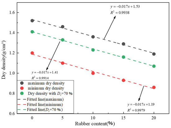 Dry densities of rubber-modified calcareous sand with different mix proportions.