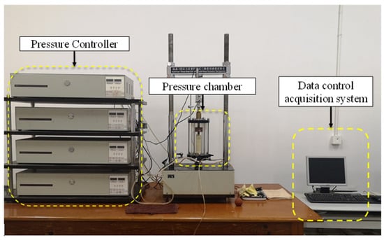 An SLB-1 stress–strain-controlled shear penetration tester (Figure 6), which was composed of a pressure controller, pressure chamber, and data acquisition system, was utilized to measure the shear strength and deformation characteristics of the calcareous sand. The maximum axial pressure was 20 kN, the maximum circumference range was 2 MPa, and the maximum osmotic pressure was 1 MPa.