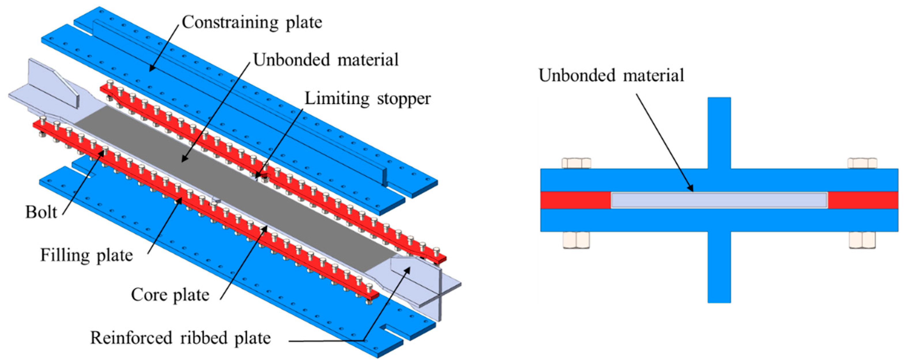 - Zhuge, Y.; Ma, X.; Zeng, J. Recent progress in buckling restrained braces: A review on material development and selection. Adv. Struct. Eng. 2022, 25, 1549–1564. [Google Scholar] [CrossRef]