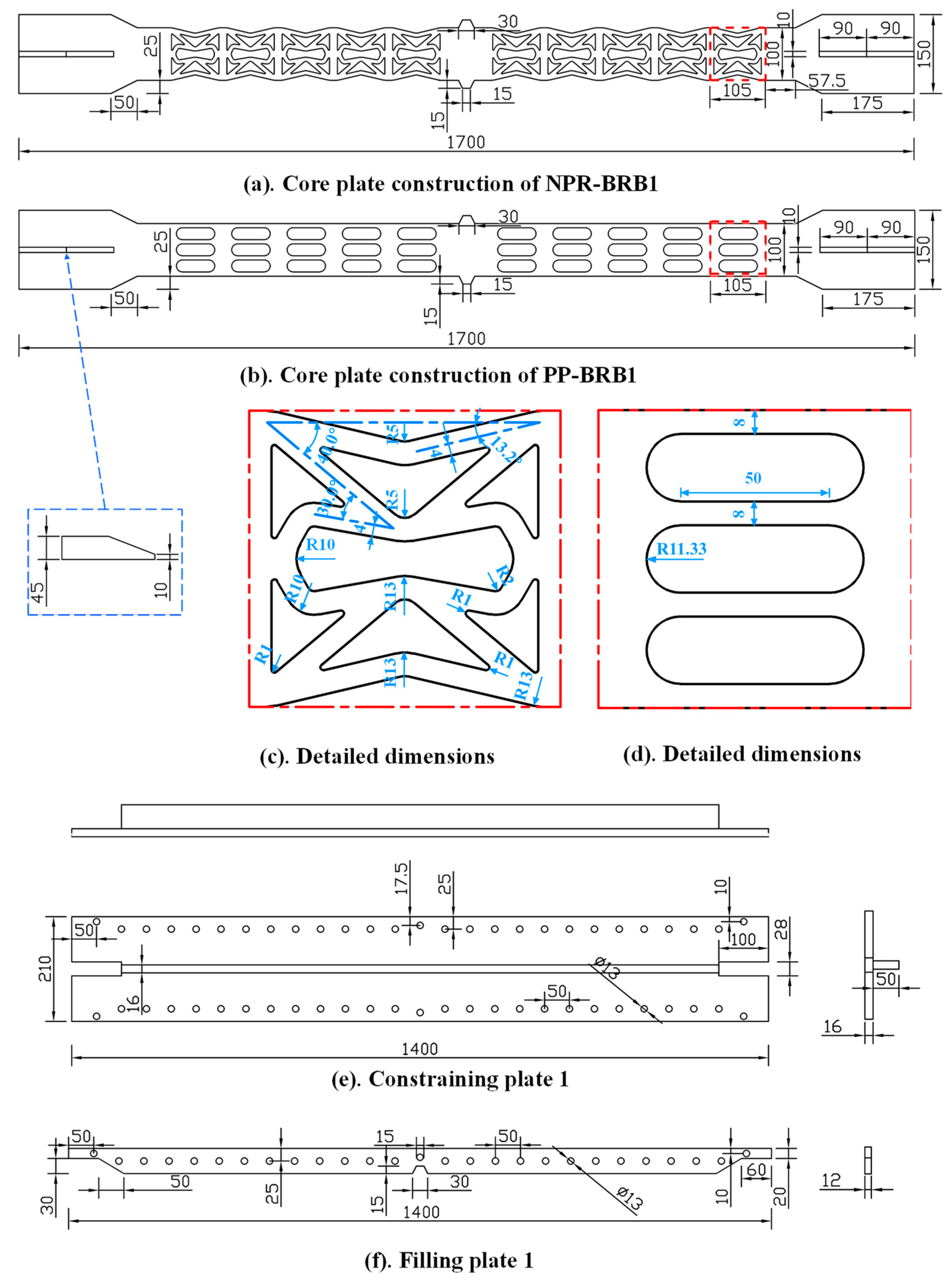 - Zhang, Y.; Ren, X.; Zhang, X.Y.; Huang, T.T.; Sun, L.; Xie, Y.M. A novel buckling-restrained brace with auxetic perforated core: Experimental and numerical studies. Eng. Struct. 2021, 249, 113223. [Google Scholar] [CrossRef]