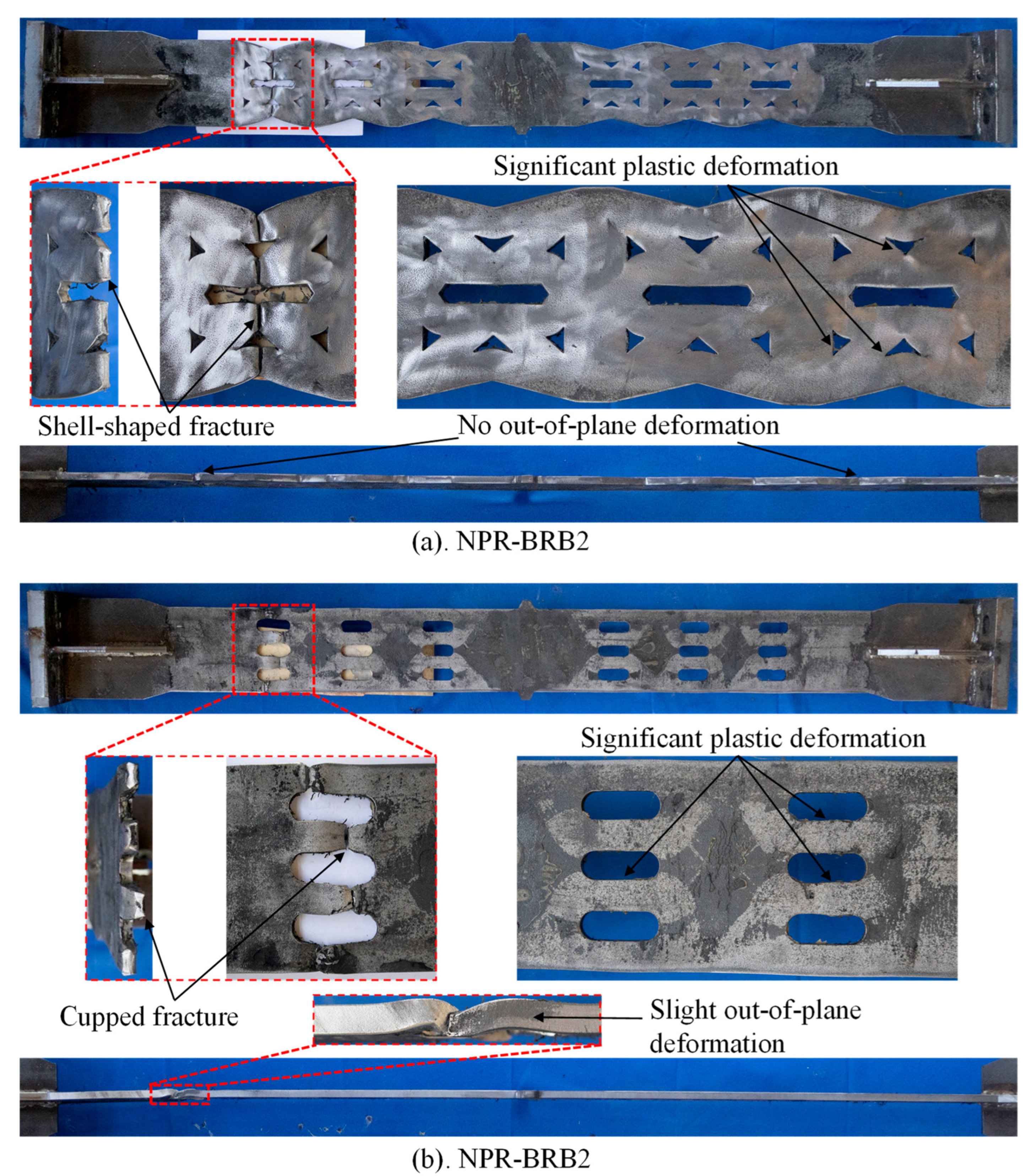 - Xiong, C.; Cao, Y.C.; Wang, T. Experimental and numerical studies of a core plate repairable double-stage yield buckling-restrained brace. J. Constr. Steel Res. 2024, 223, 109006. [Google Scholar] [CrossRef]
