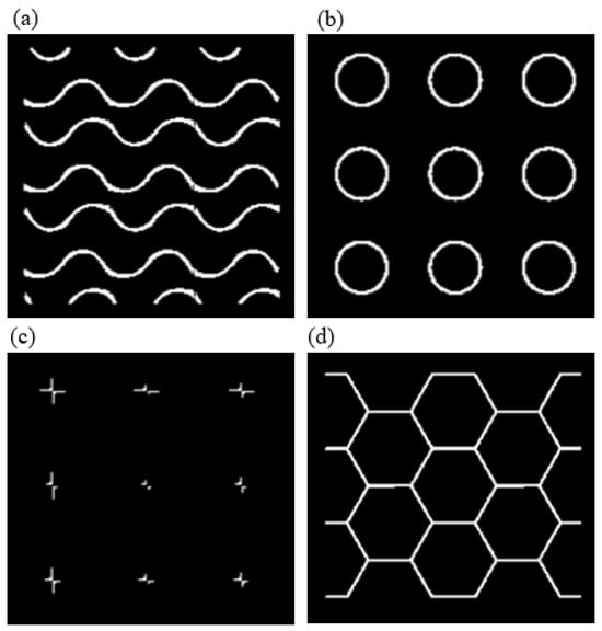 Slice Samples of (a) Gyroid, (b) Primitive, (c) Diamond, and (d) Honeycomb.