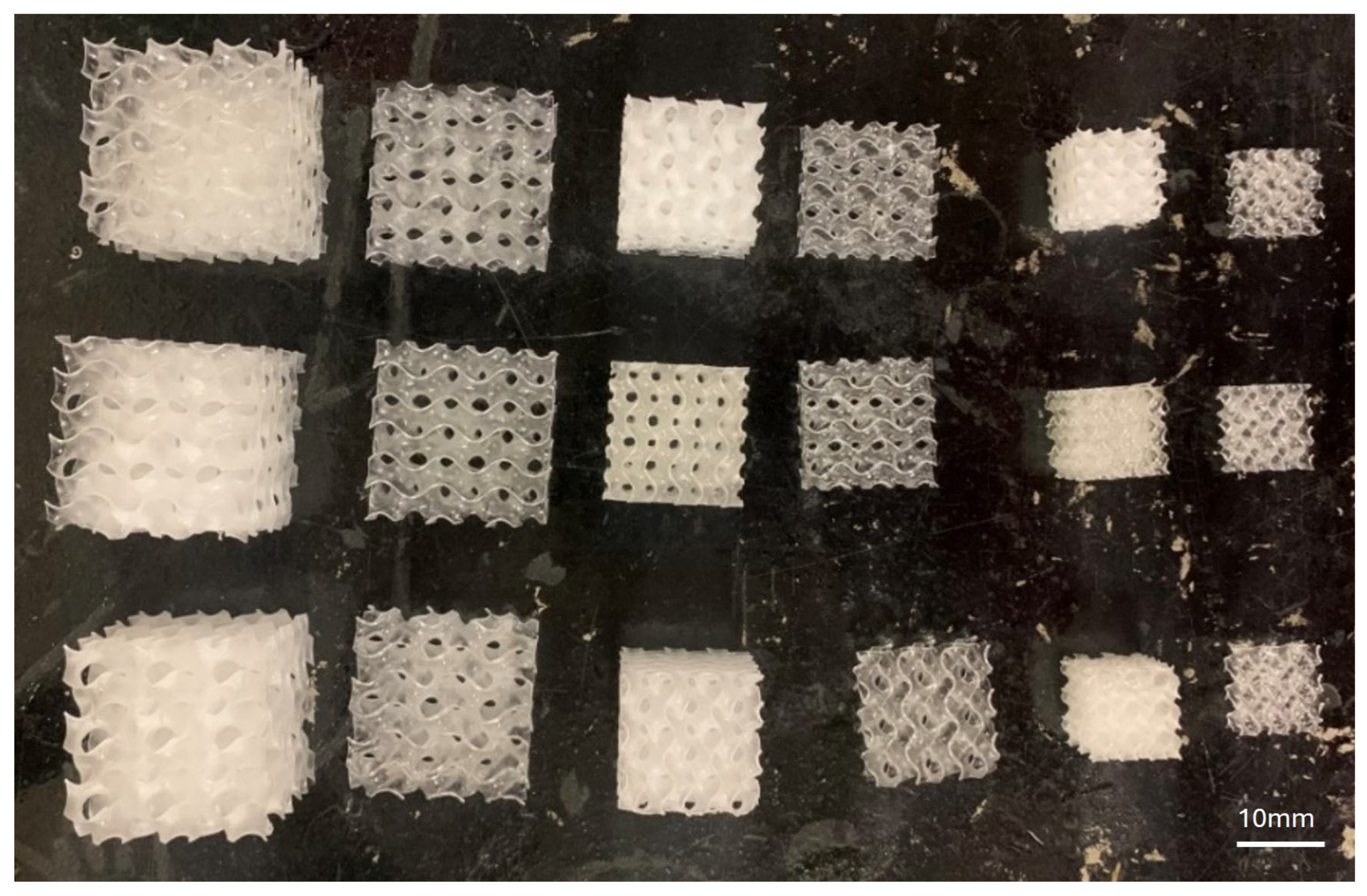 - Guo, X.; Ding, J.; Li, X.; Qu, S.; Fuh, J.Y.H.; Lu, W.F.; Song, X.; Zhai, W. Interpenetrating phase composites with 3D printed triply periodic minimal surface (TPMS) lattice structures. Compos. Part B Eng. 2023, 248, 110351. [Google Scholar] [CrossRef]
