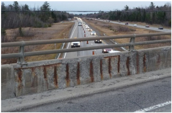 - Almusallam, A.; Al-Gahtani, A. Assessment of Corrosion Damage to Concrete Bridge Barriers. Struct. Infrastruct. Eng. 2018, 14, 220–231. [Google Scholar]