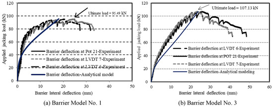 | Net lateral deflection of barrier wall (mm) | 24.5 | 31.3 | 23.3 | 43.2 | 17.8 | |