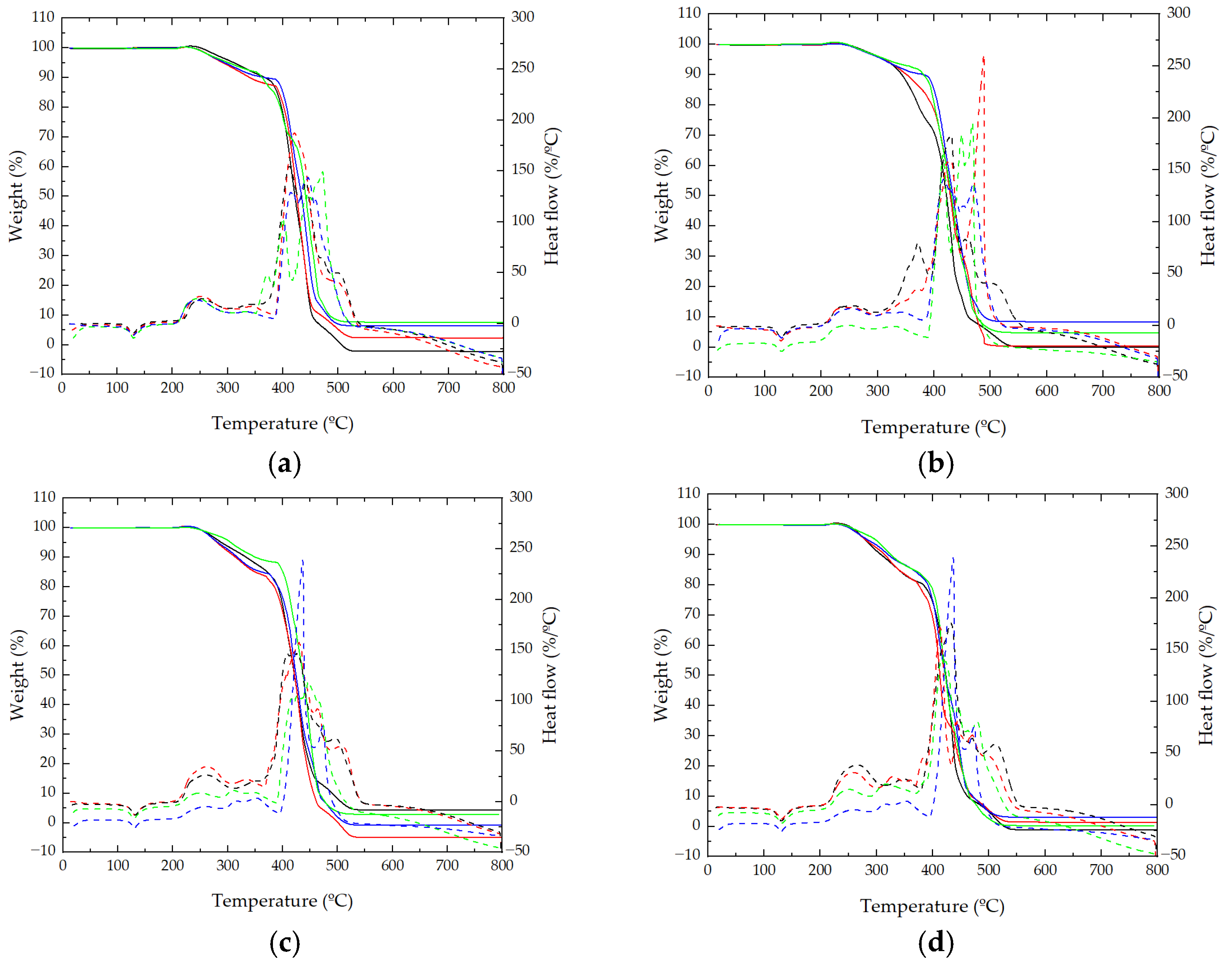 3.1. Simultaneous TGA/DSC Analysis and Crystallinity Degree