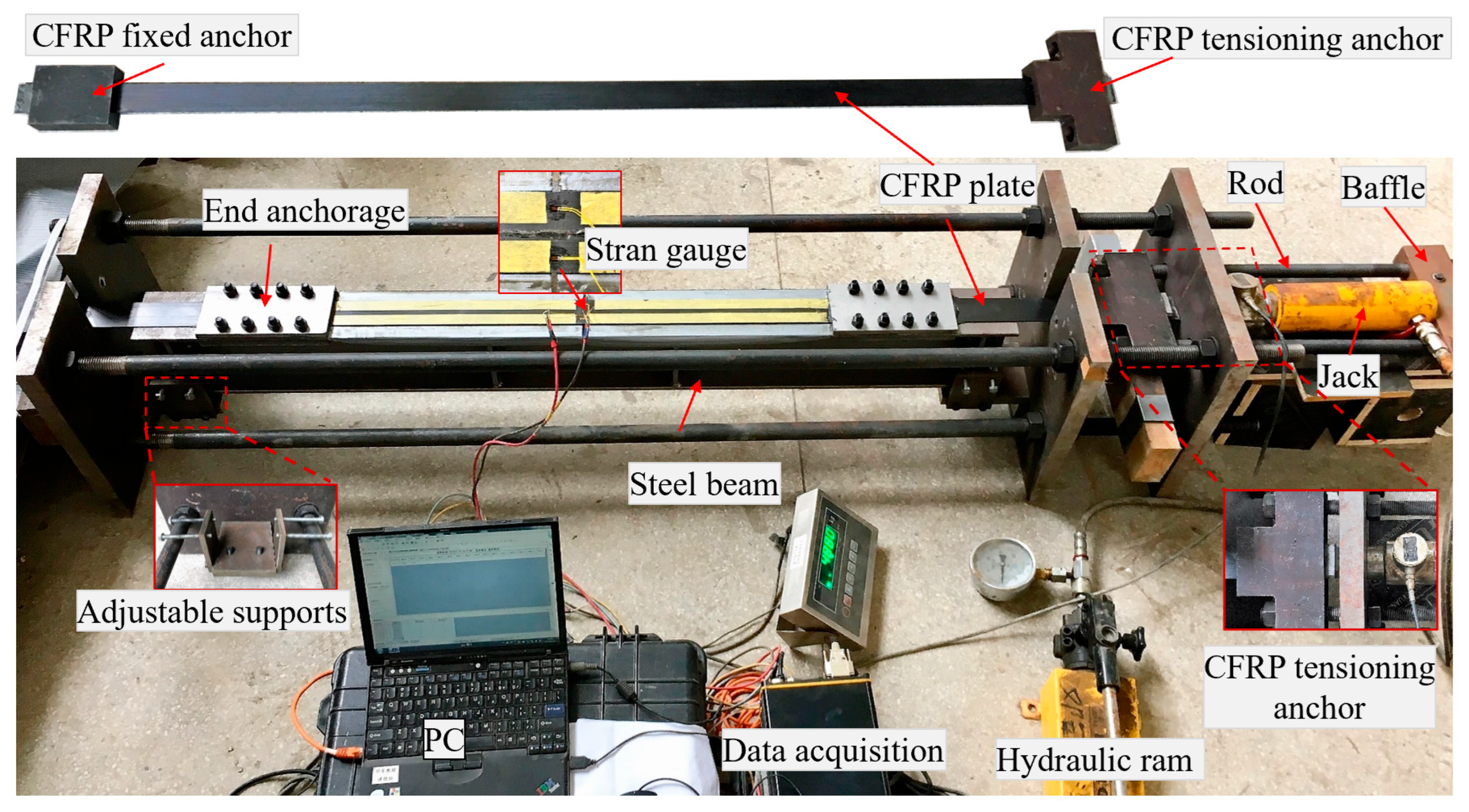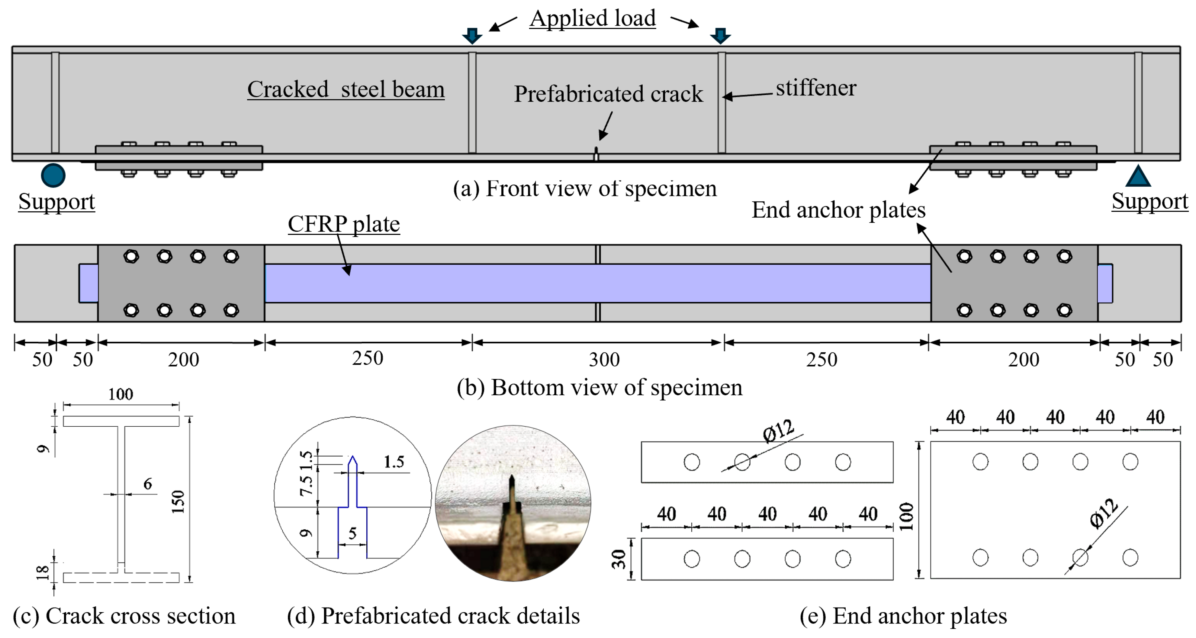 11]. By applying a pre-tension force, CFRP can partially counteract stresses induced by external loads, reducing the stress intensity factor at crack tips and suppressing crack propagation rates [