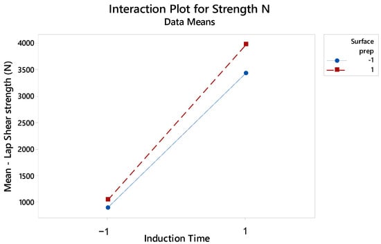 Interaction Plot for Induction Time and Surface Preparation. The near-parallel lines indicate a lack of significant interaction.