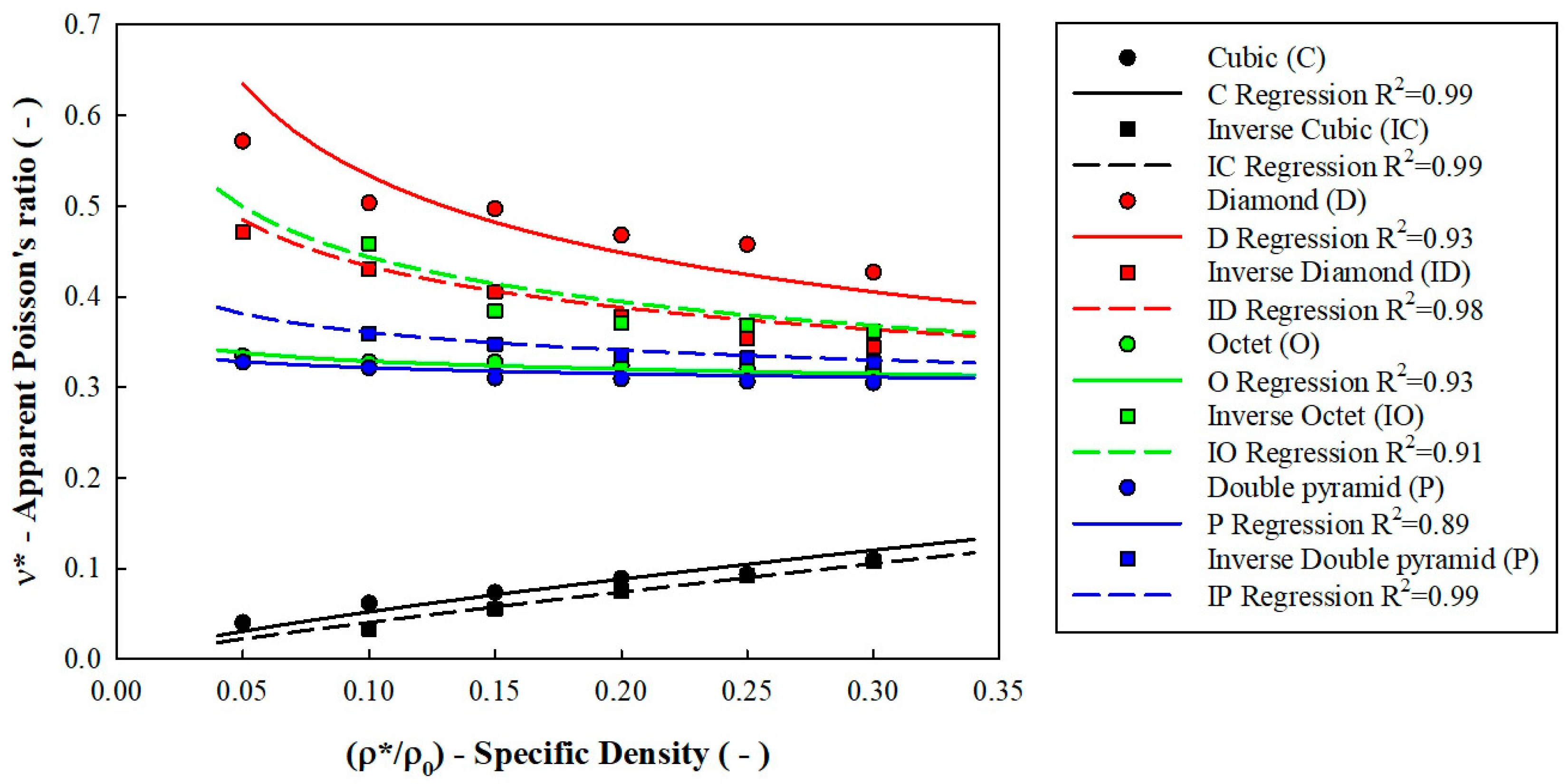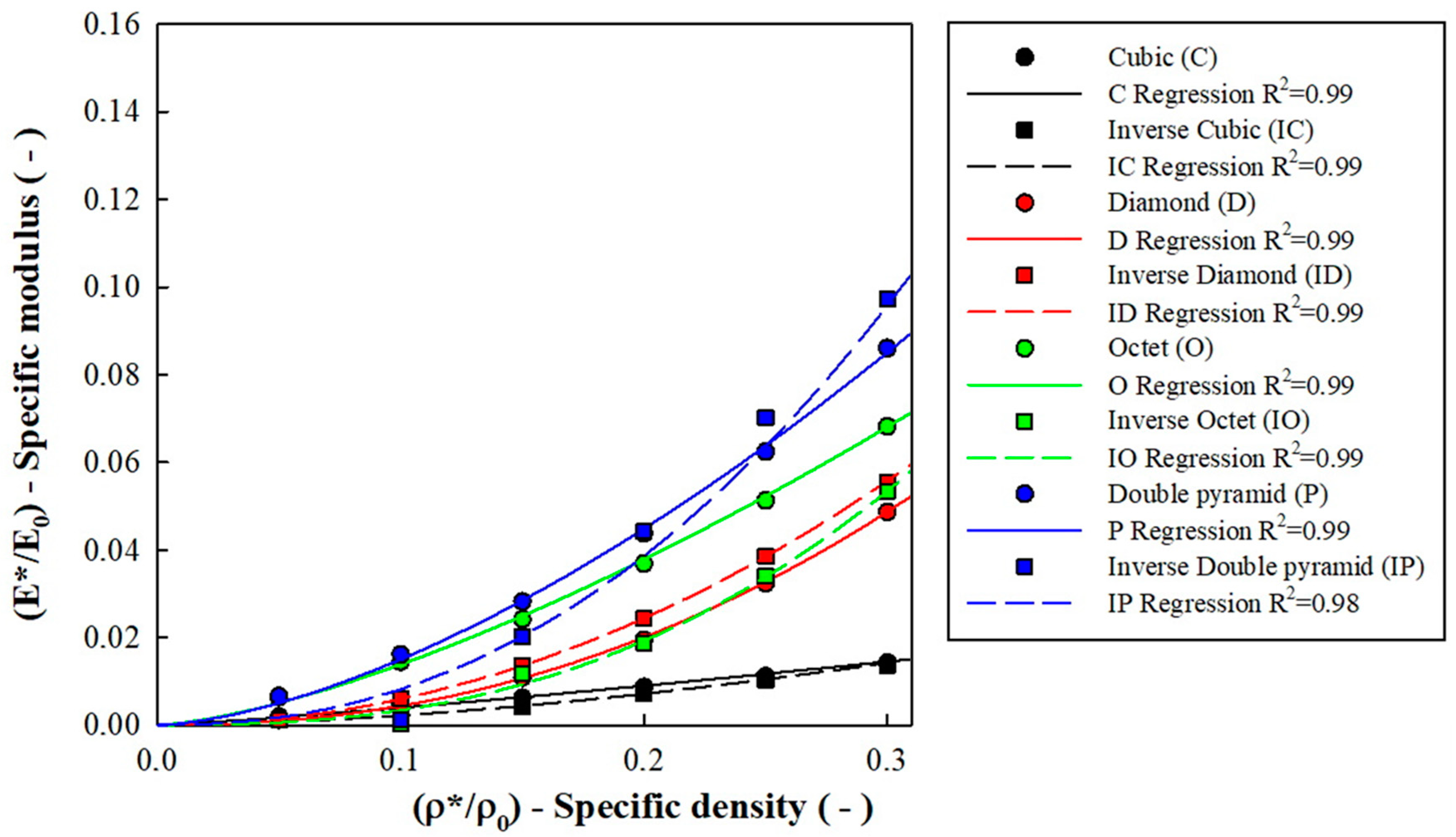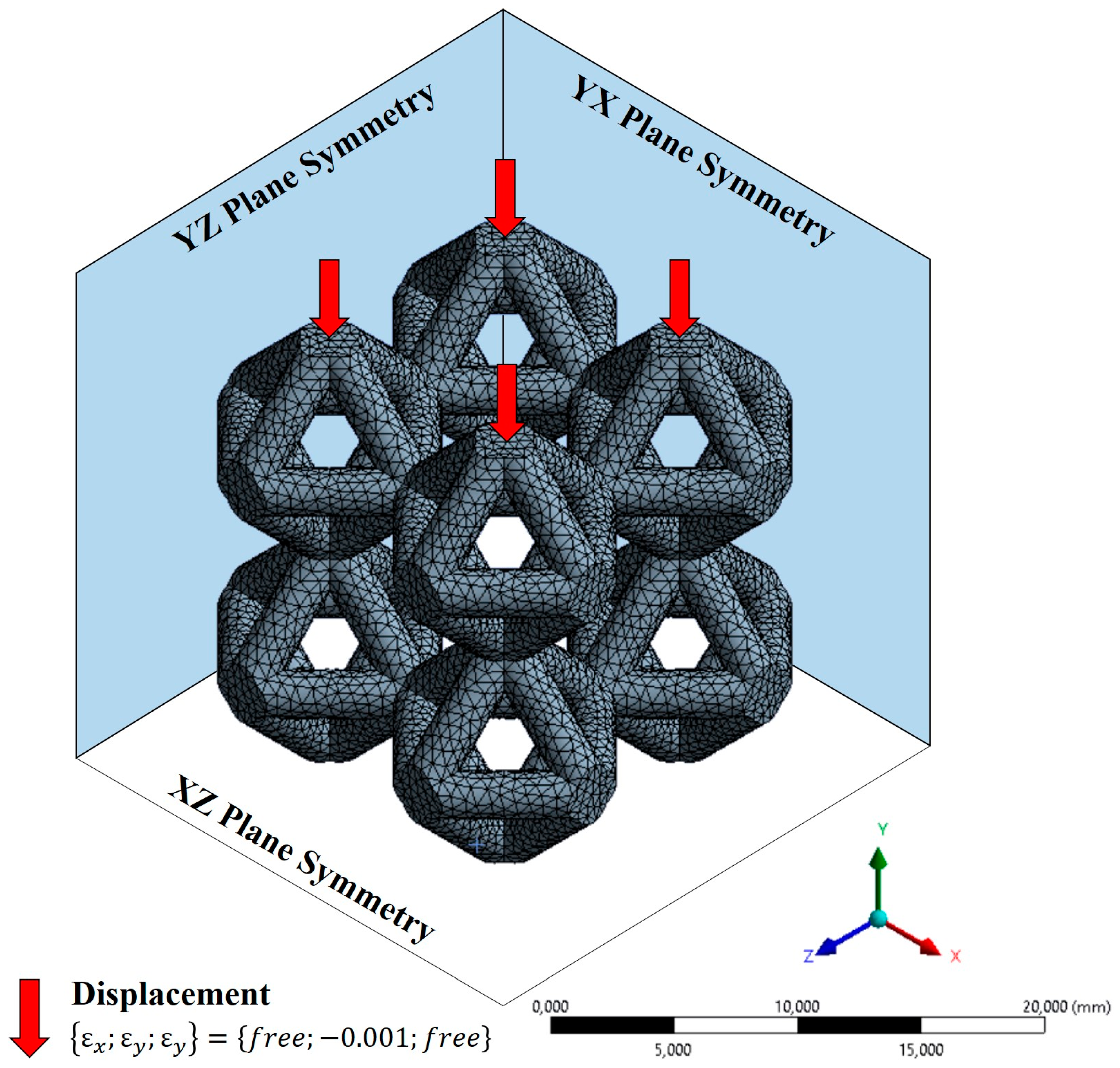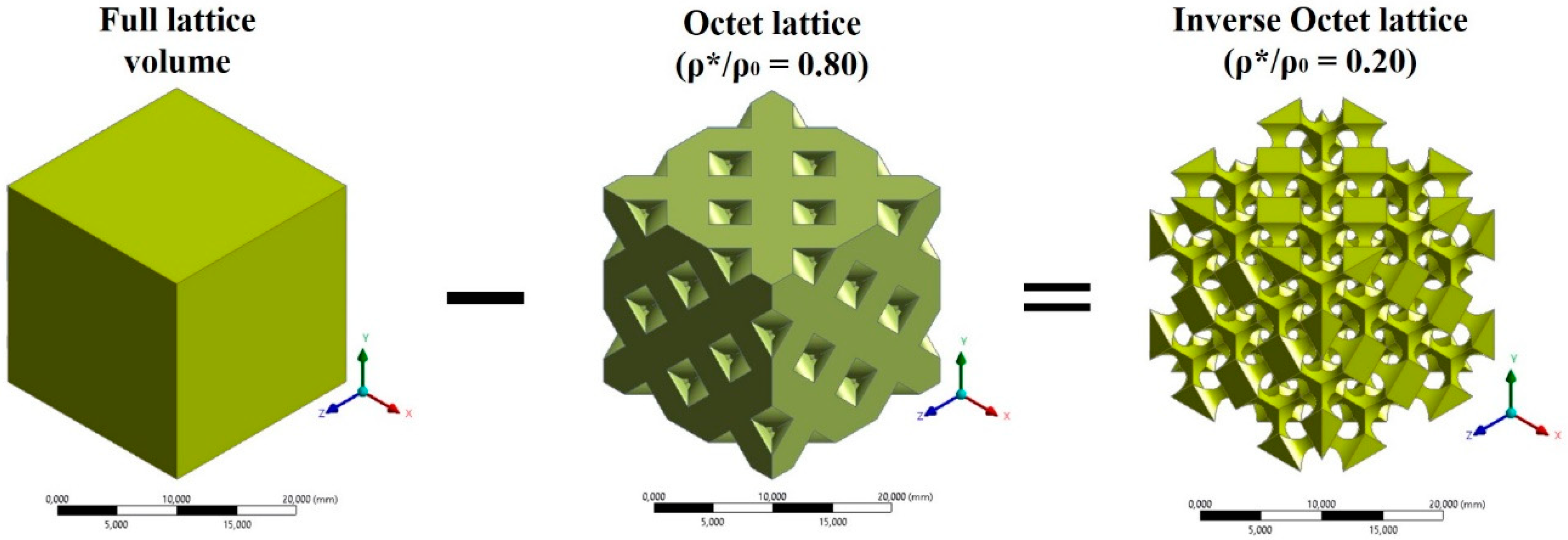 | Inverse lattice | 2 × 2 × 2 CAD model for FEA (Scale bar: 20 mm) | ![]() | ![]() | ![]() | ![]() | |