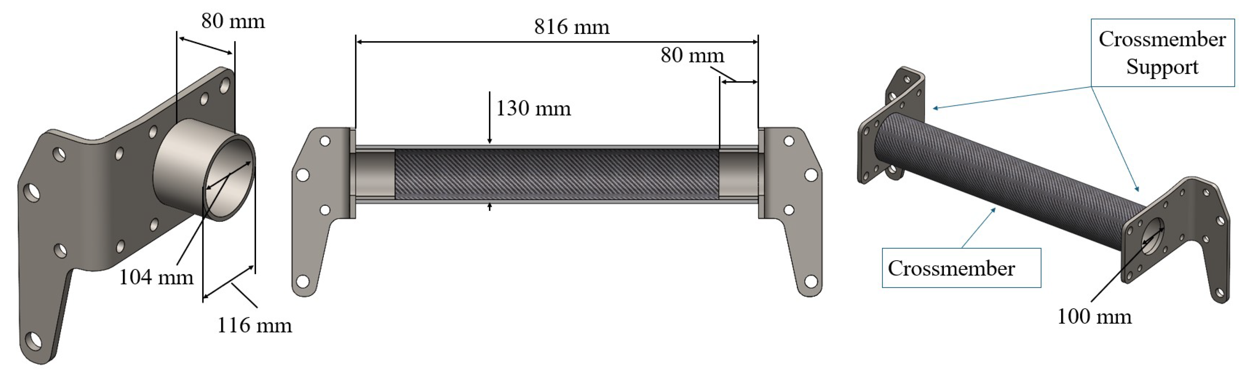 - Weight savings: The CFRP crossmember achieved a 68.08% reduction in weight compared to the traditional steel solution.