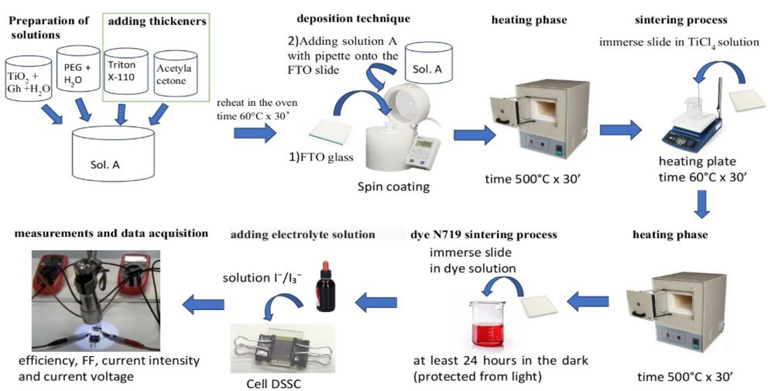 These components work synergistically to obtain a stable, homogeneous, and easily spreadable TiO2/Gh colloidal paste with optimal properties for sintering and dye absorption. The quality of the paste directly impacts the efficiency of the DSSC.