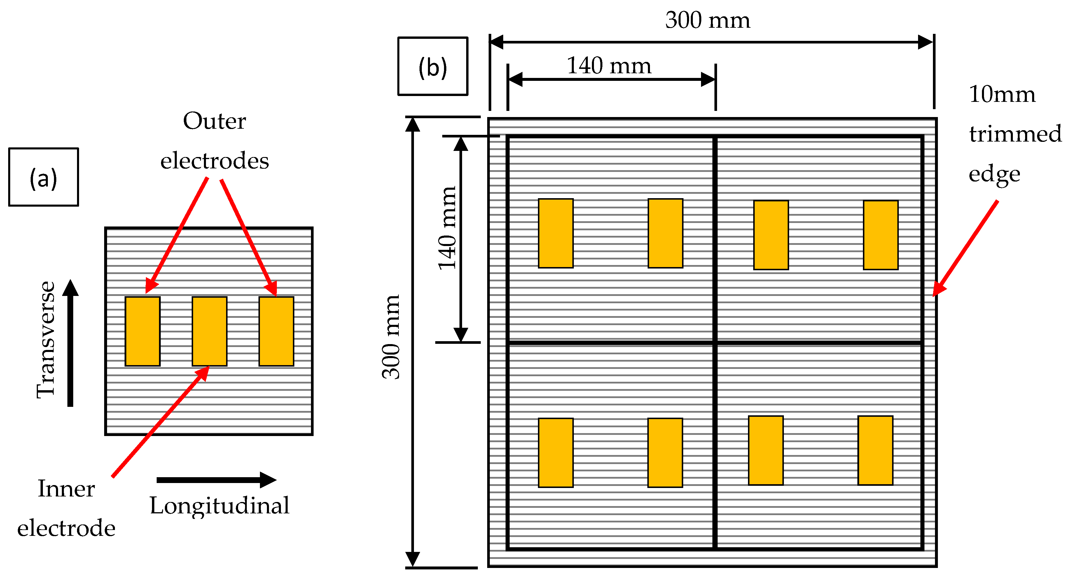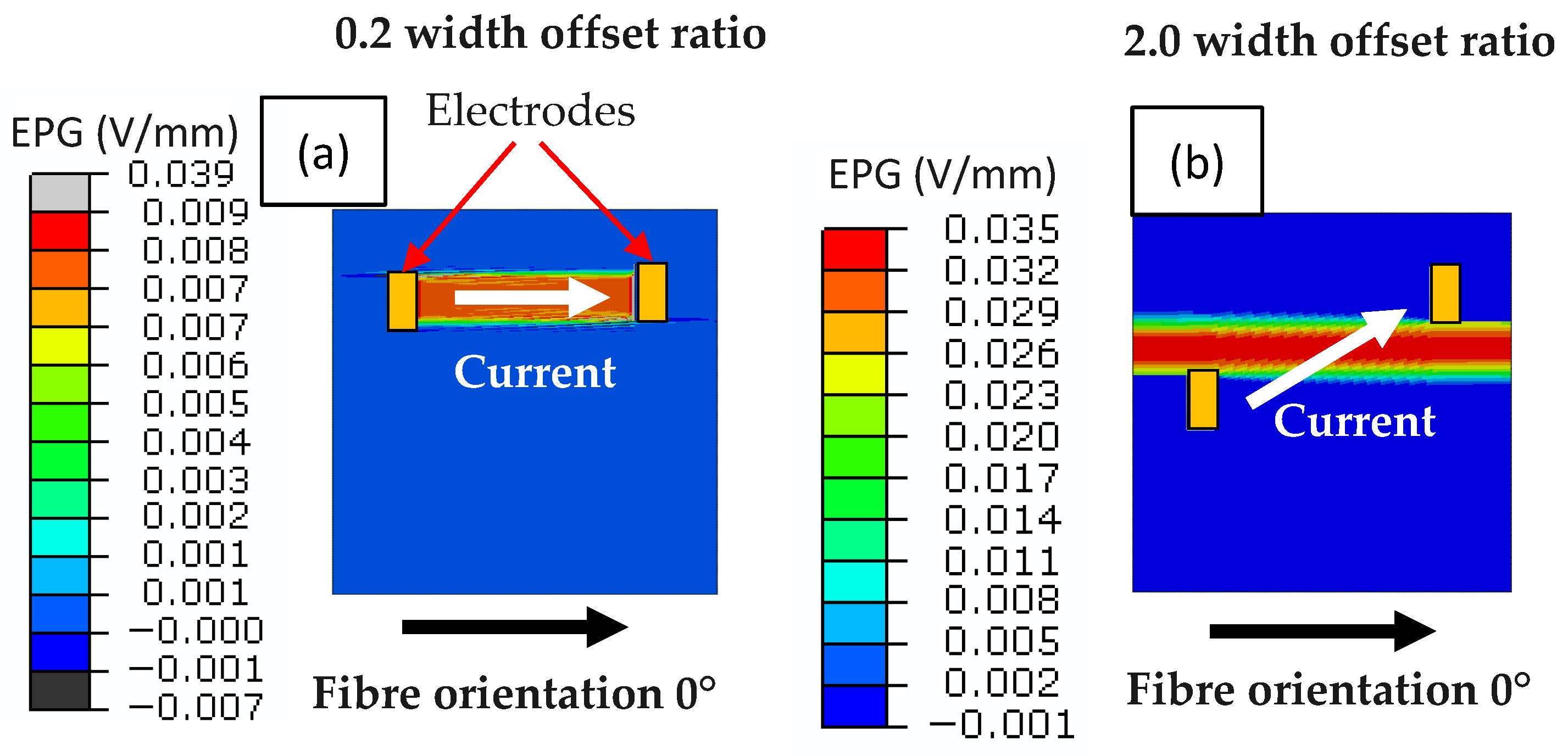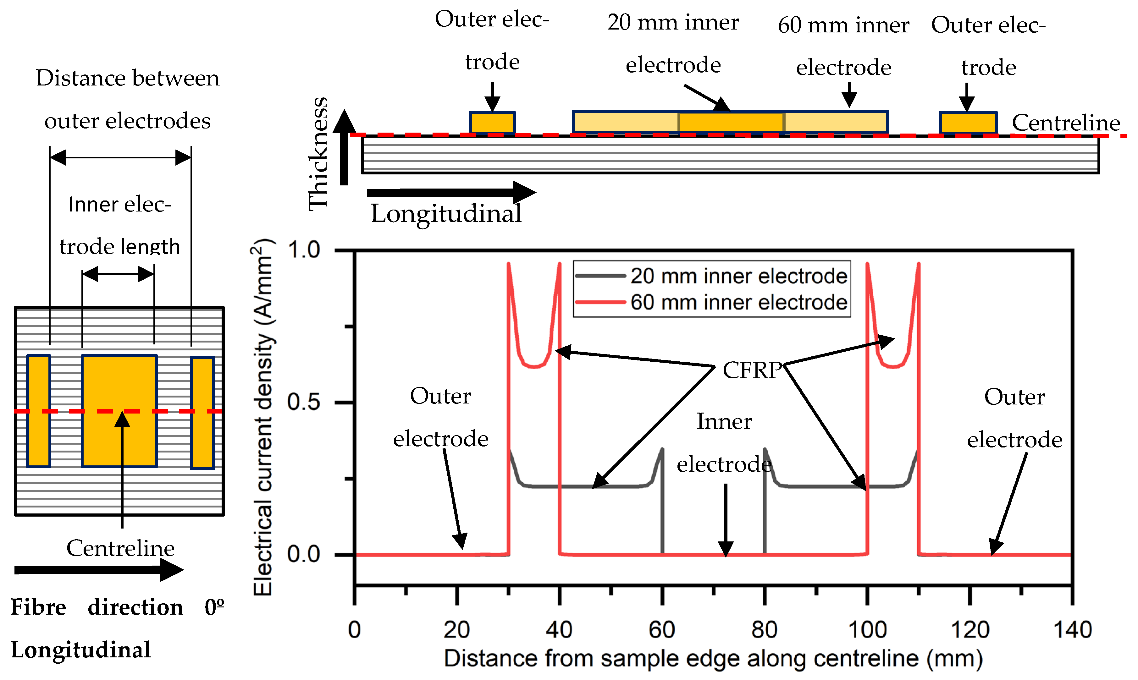 - Malik, S.A.; Jalalvand, M.; Wadge, M.D.; Acosta, J.D.; Felfel, R.M. Robust Electrical Contact with Low Interface Resistance Using Embedded Co-cured Electrodes in Carbon Fibre Composites. Appl. Compos. Mater. 2025, 32, 2625–2652. [Google Scholar] [CrossRef]