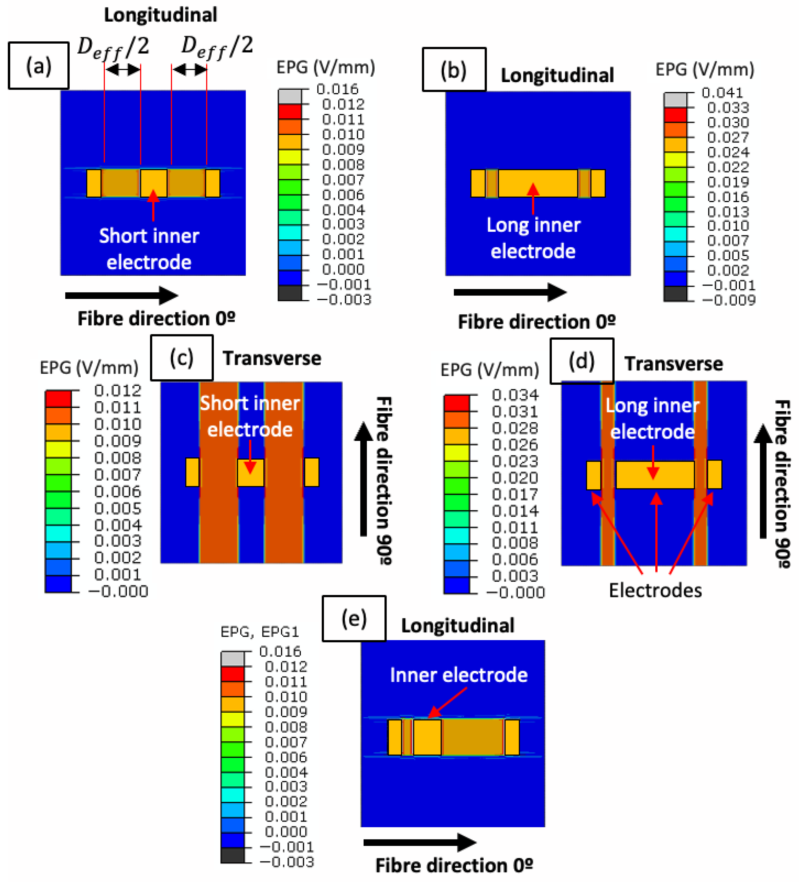 | Inner Electrode Length/Distance Between Outer Electrodes | Longitudinal (0°) | Transverse (90°) | ||