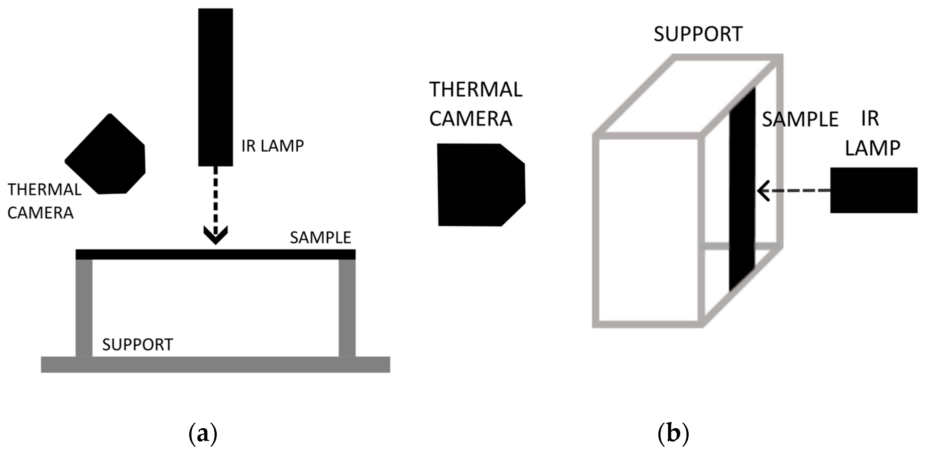 - Zhang, H.; Robitaille, F.; Grosse, C.U.; Ibarra-Castanedo, C.; Martins, J.O.; Sfarra, S.; Maldague, X.P.V. Optical Excitation Thermography for Twill/Plain Weaves and Stitched Fabric Dry Carbon Fibre Preform Inspection. Compos. Part A Appl. Sci. Manuf. 2018, 107, 282–293. [Google Scholar] [CrossRef]