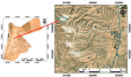 Location of several carbonate mines in central Jordan. The blue cycle is the location of taken samples.