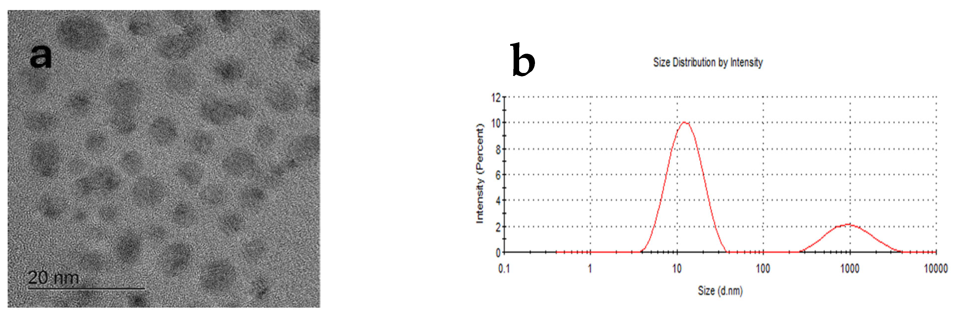 3.1. Chitosan NPs TEM, DLS, and Z Potential Characterization
