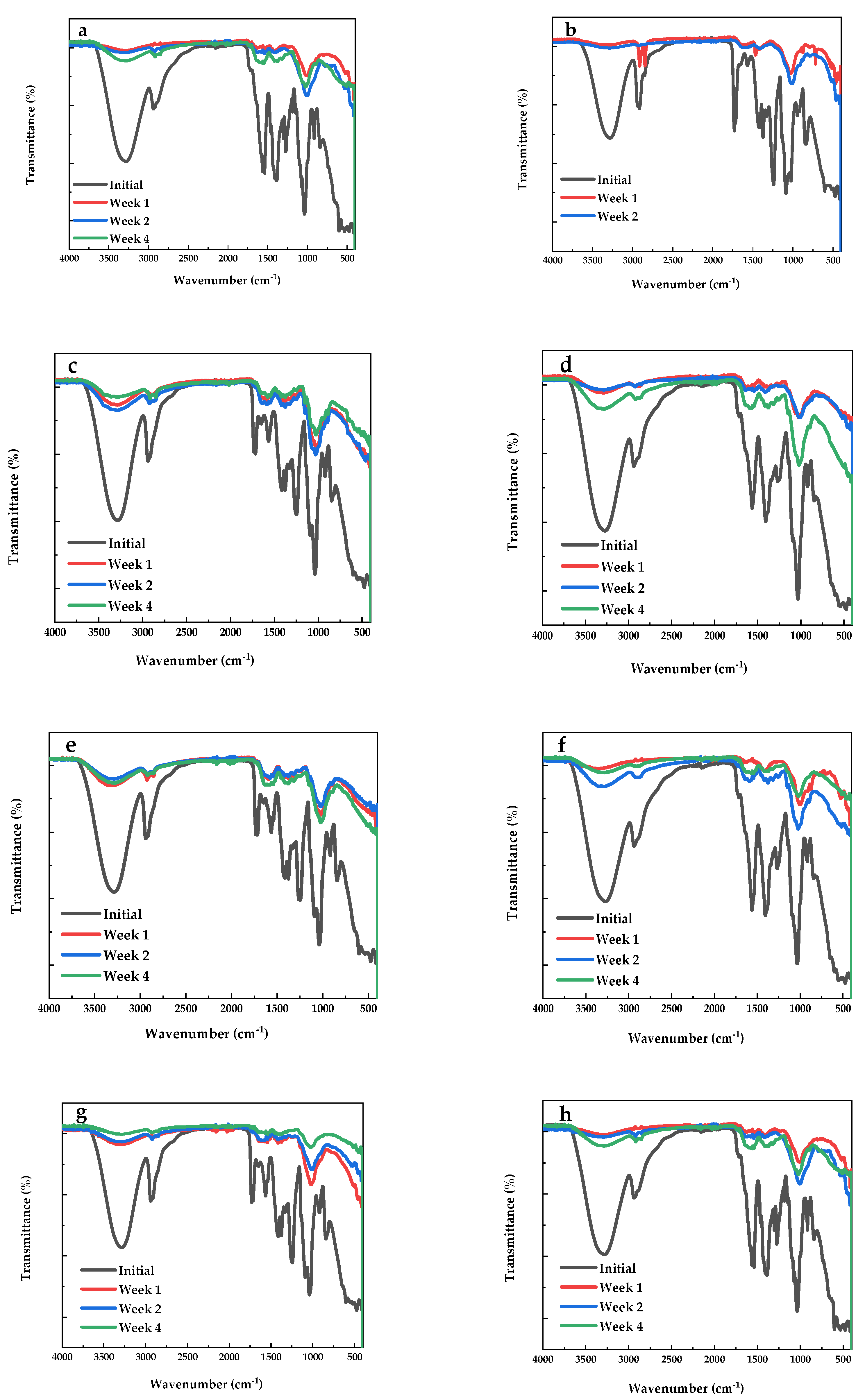 - Elgharbawy, A.S.; El Demerdash, A.M.; Sadik, W.A.; Kasaby, M.A. Enhancing the biodegradability, water solubility, and thermal properties of polyvinyl alcohol through natural polymer blending: An approach toward sustainable polymer applications. Polymers 2024, 16, 2141. [Google Scholar] [CrossRef] [PubMed]