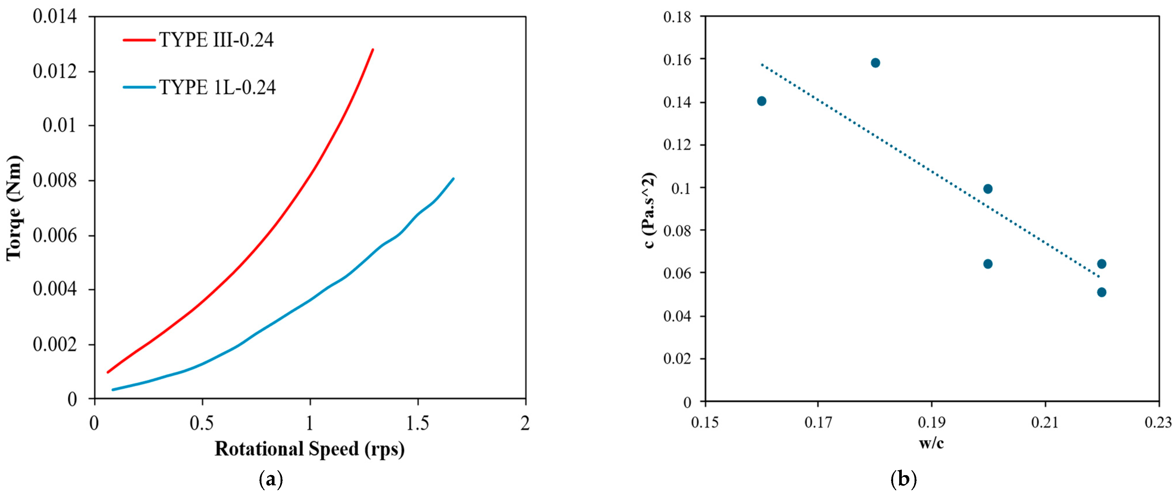 | Mixture | w/b | SP Dosage (%) | τ0 (Pa) | µ (Pa·s) | c (Pa·s2) |