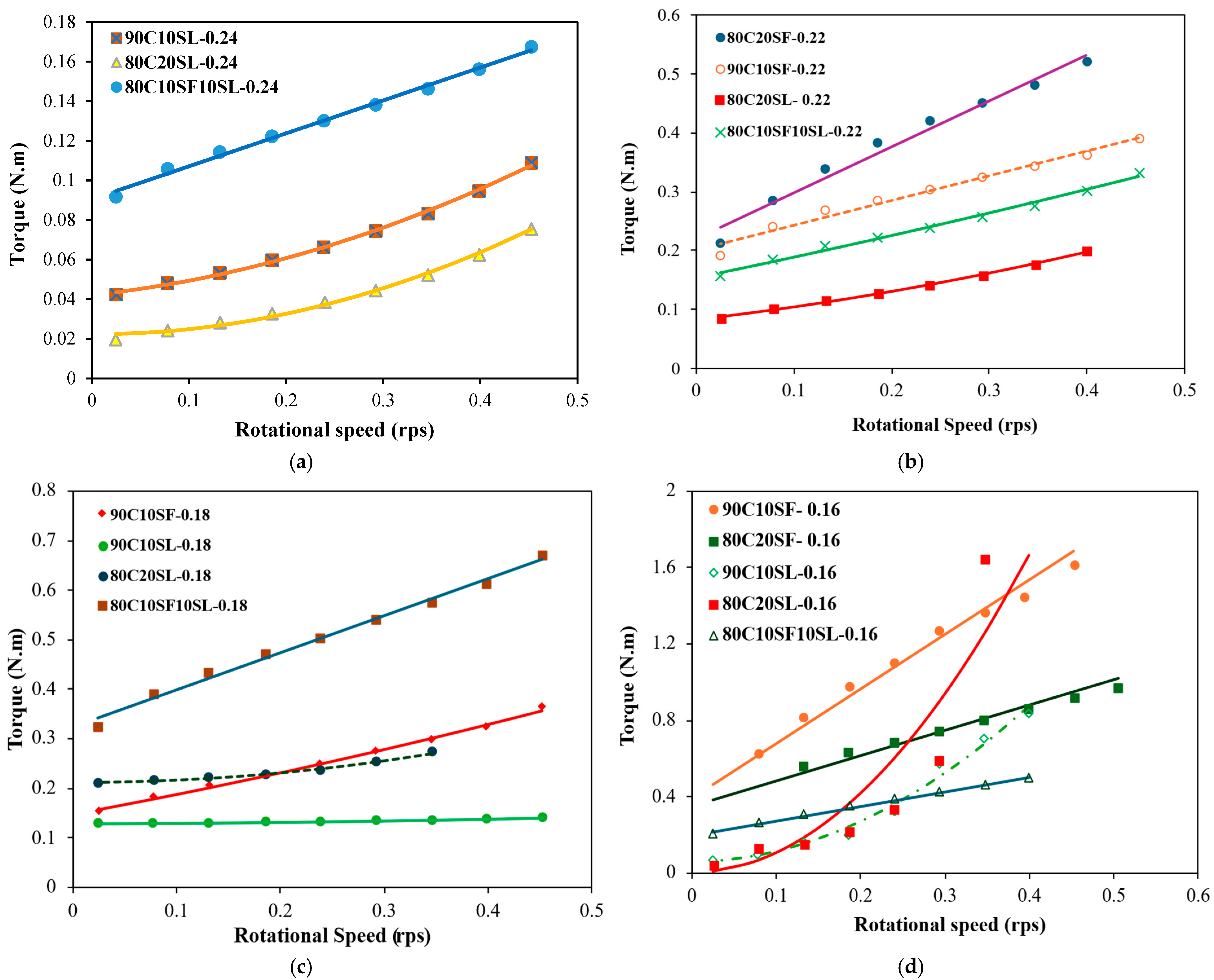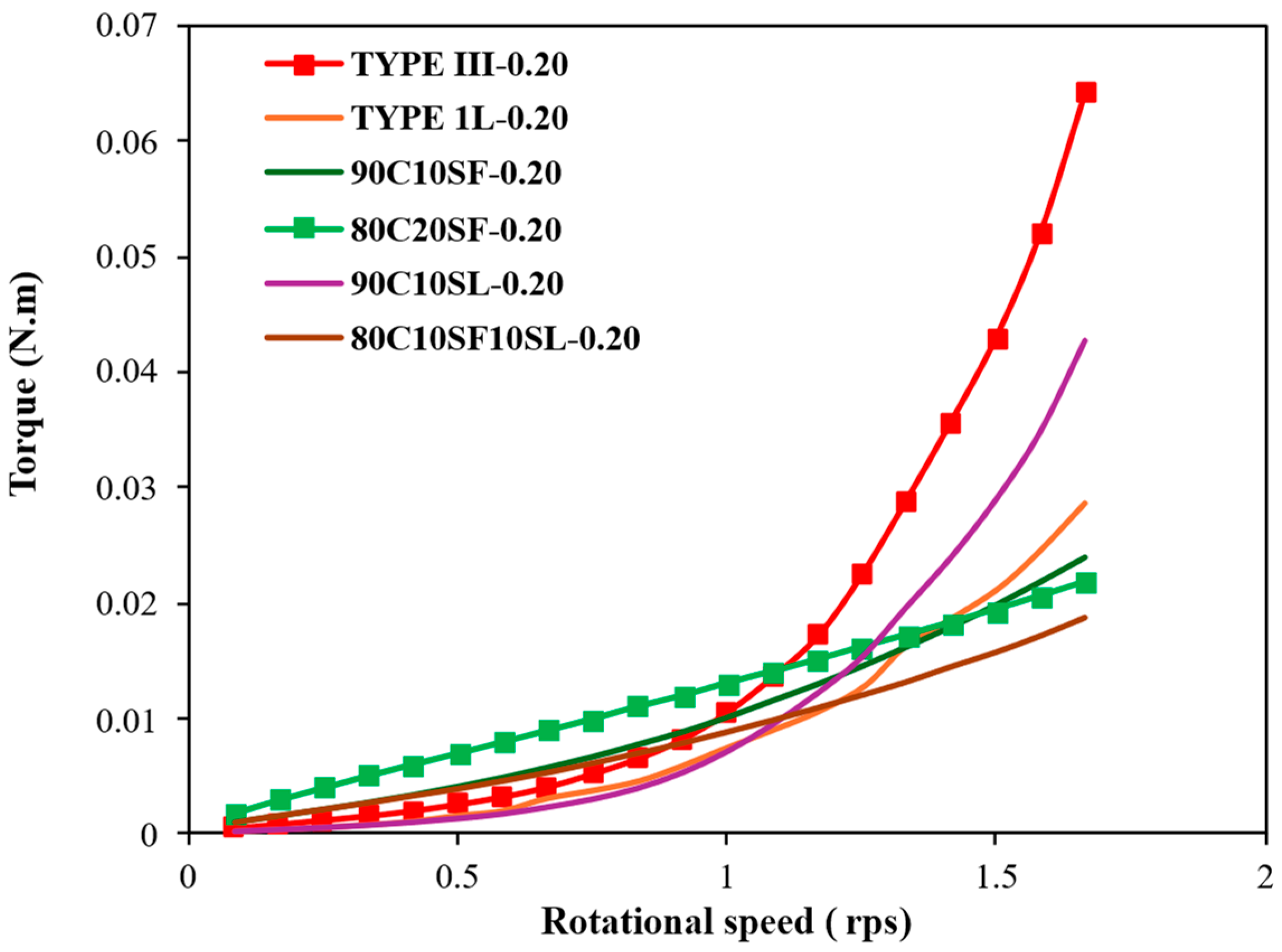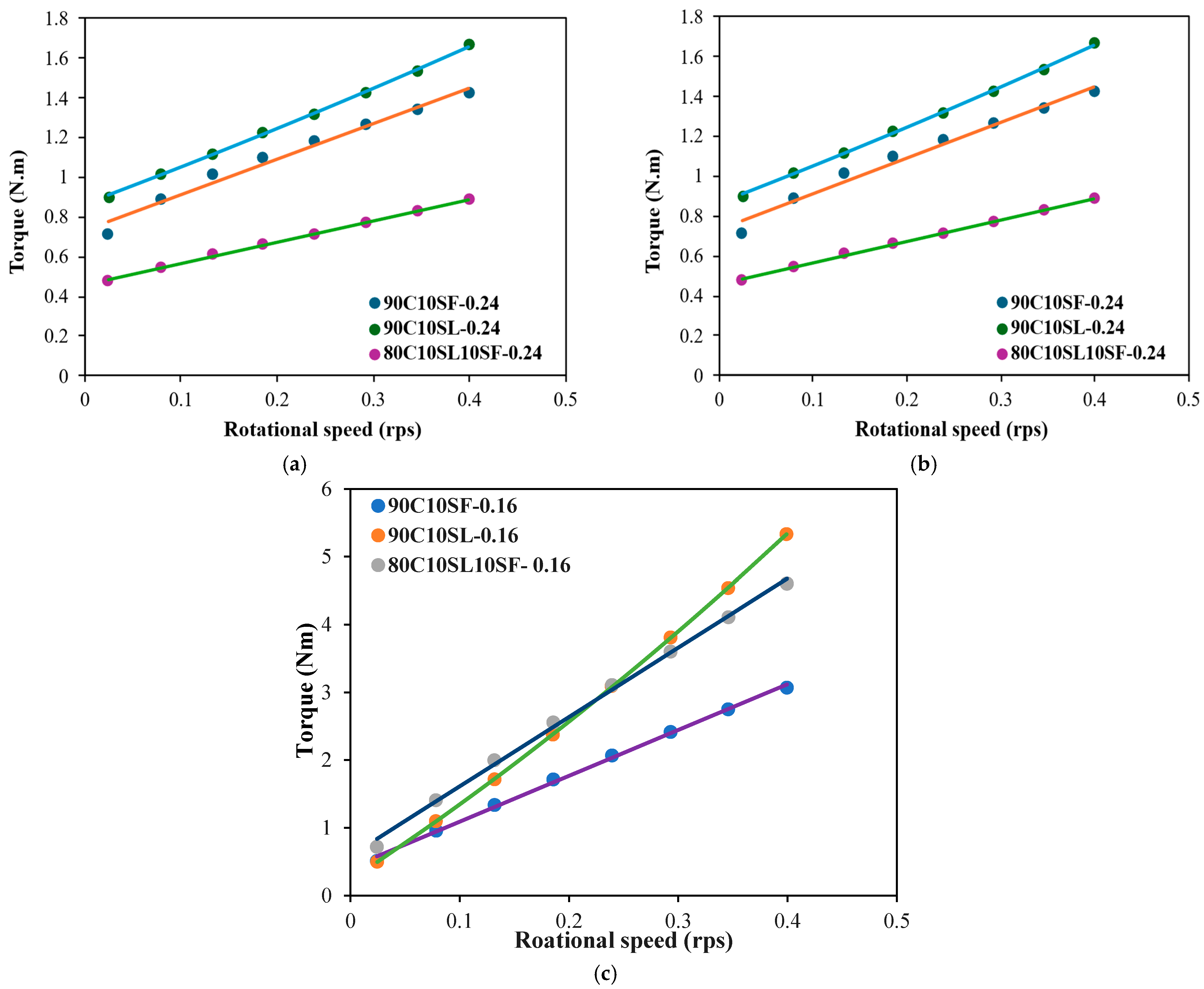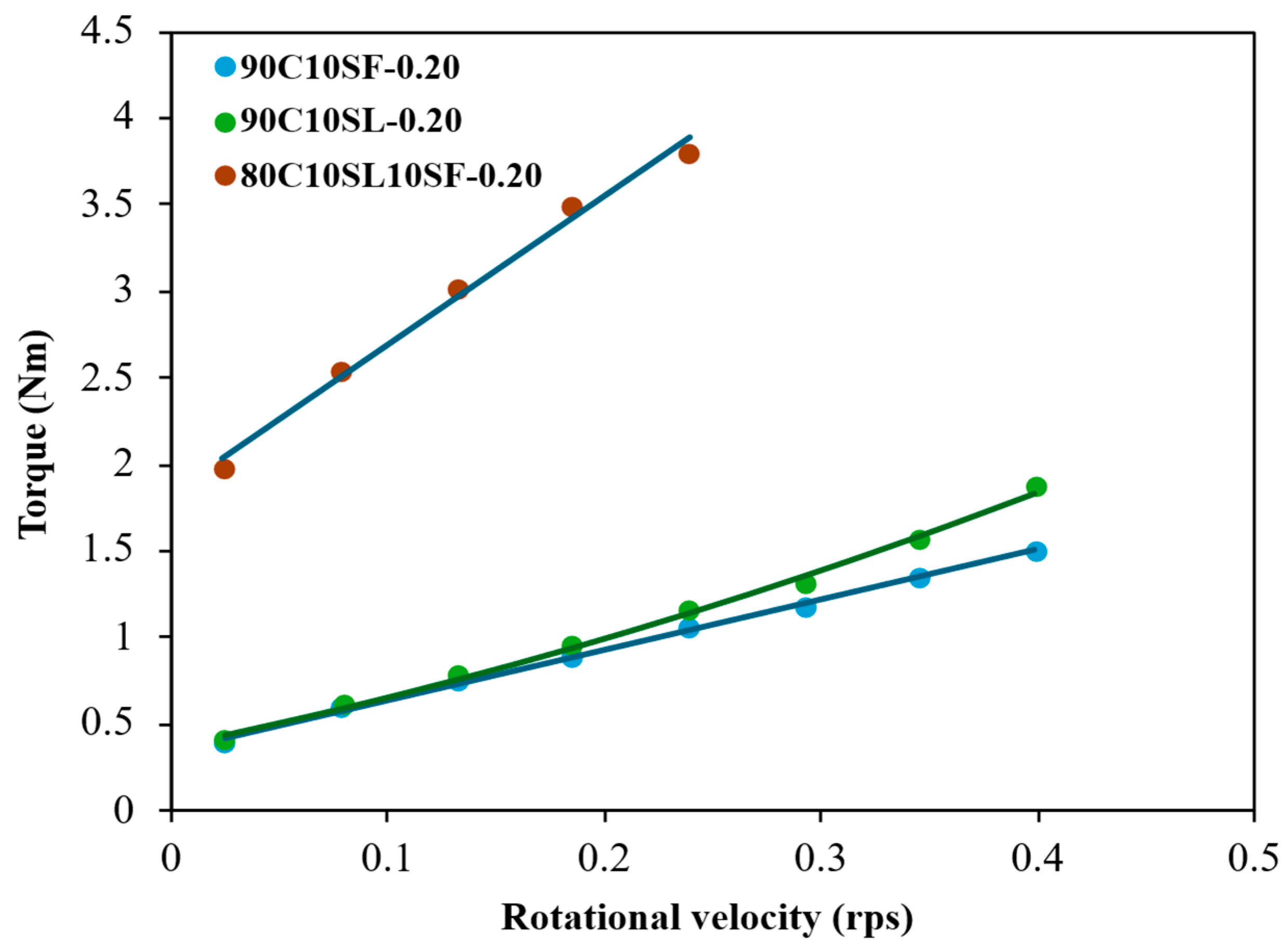 3.4. Effect of SL and SF on the Rheology of the Binder Paste Mixtures
