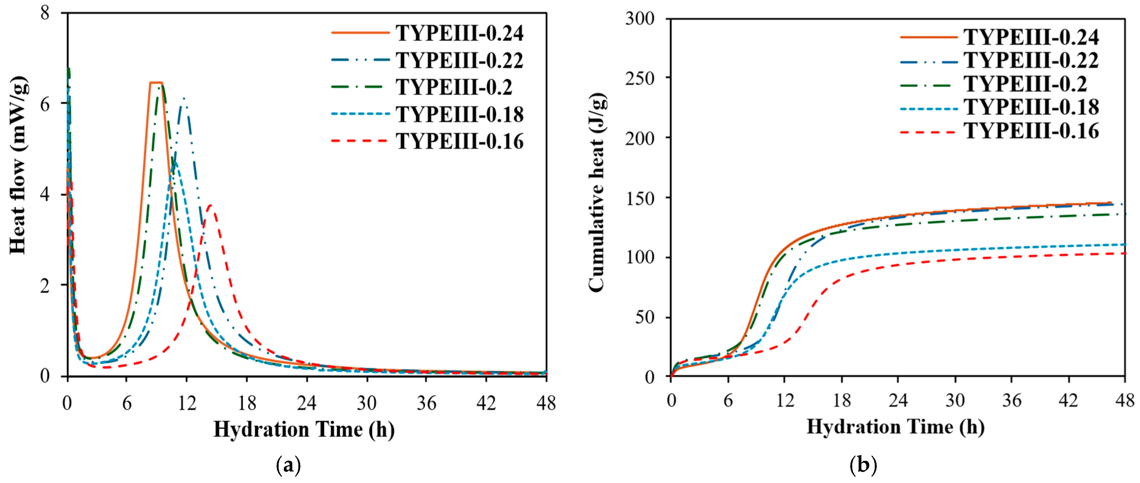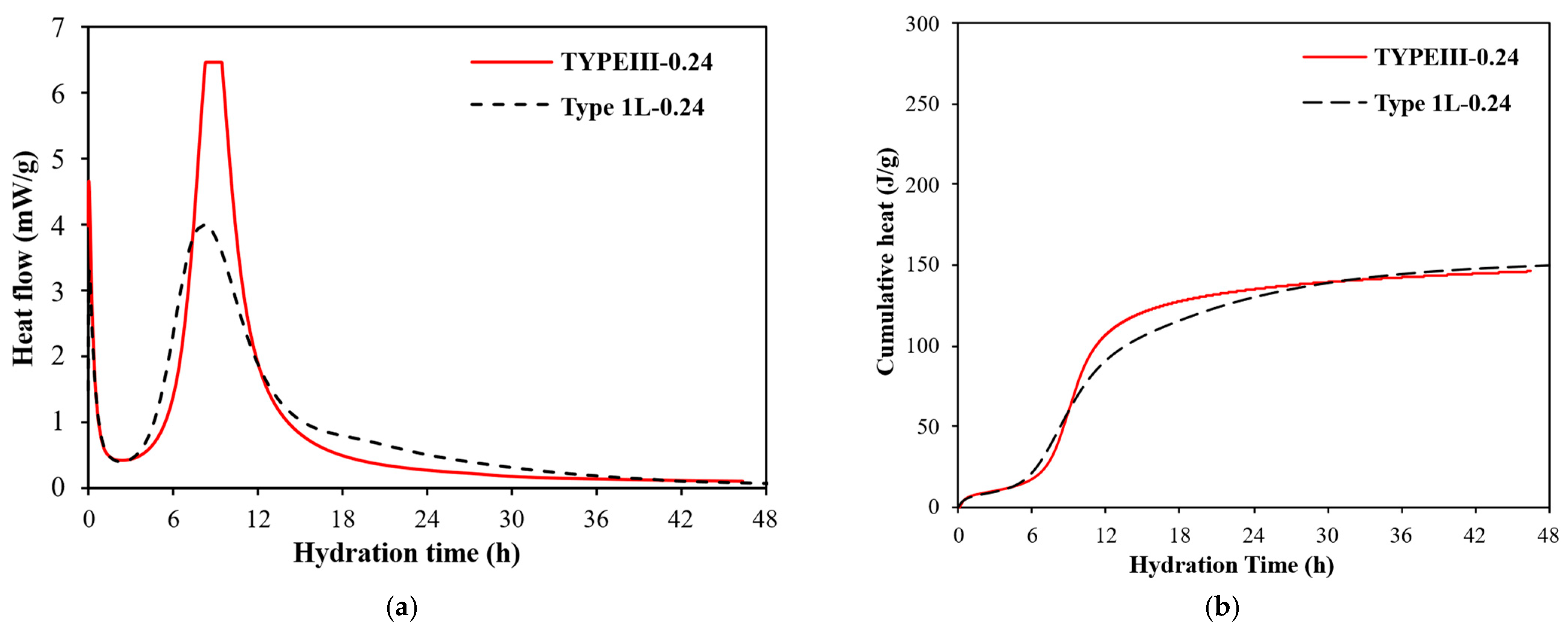 3.7.1. Effect of Cement Type and w/b on Heat of Hydration