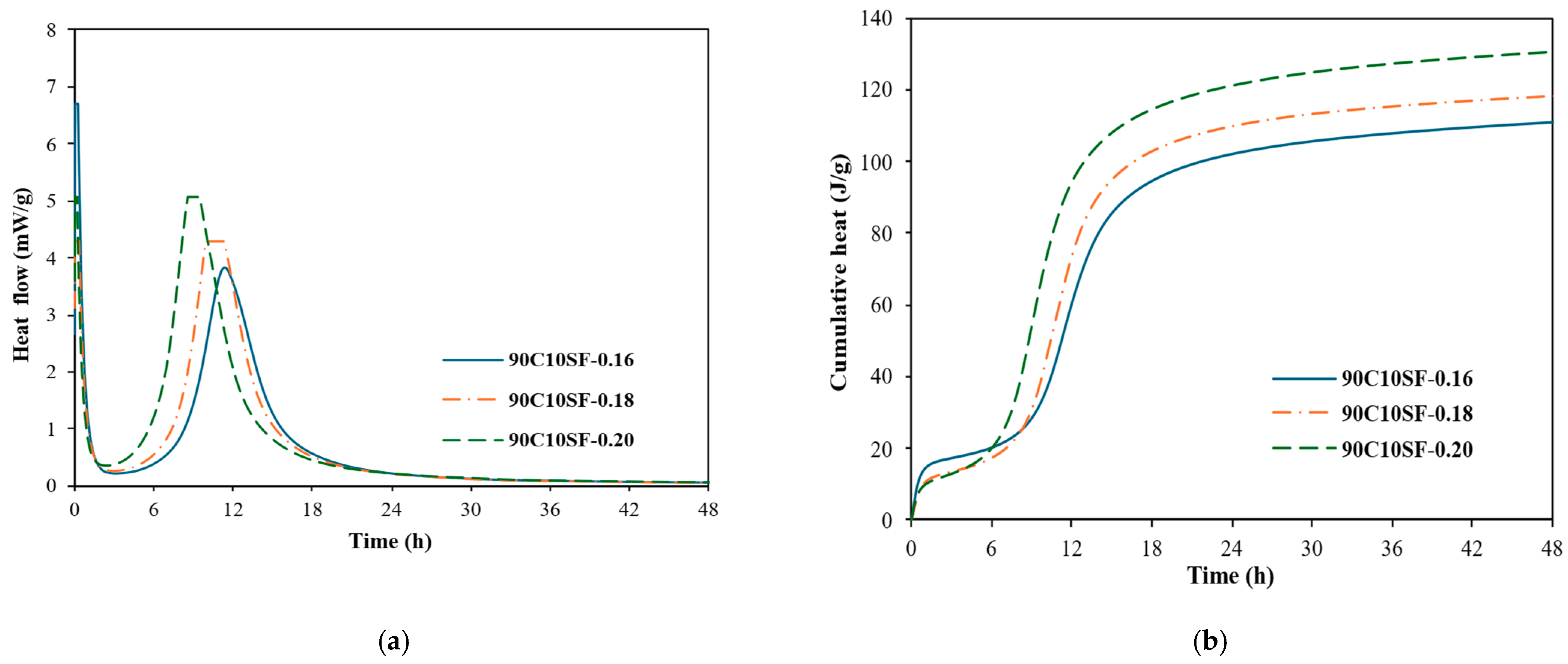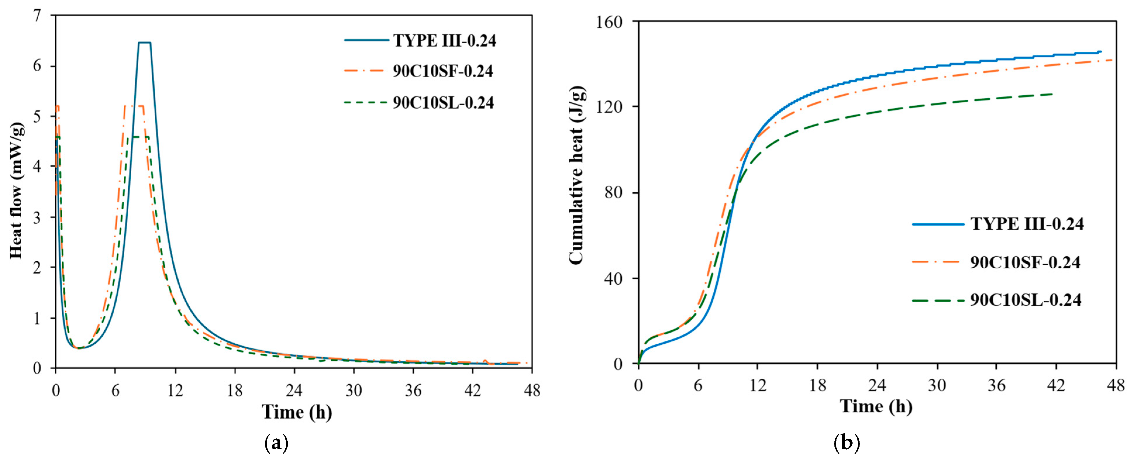 3.7.2. Effect of Slag and Silica Fume on Heat of Hydration