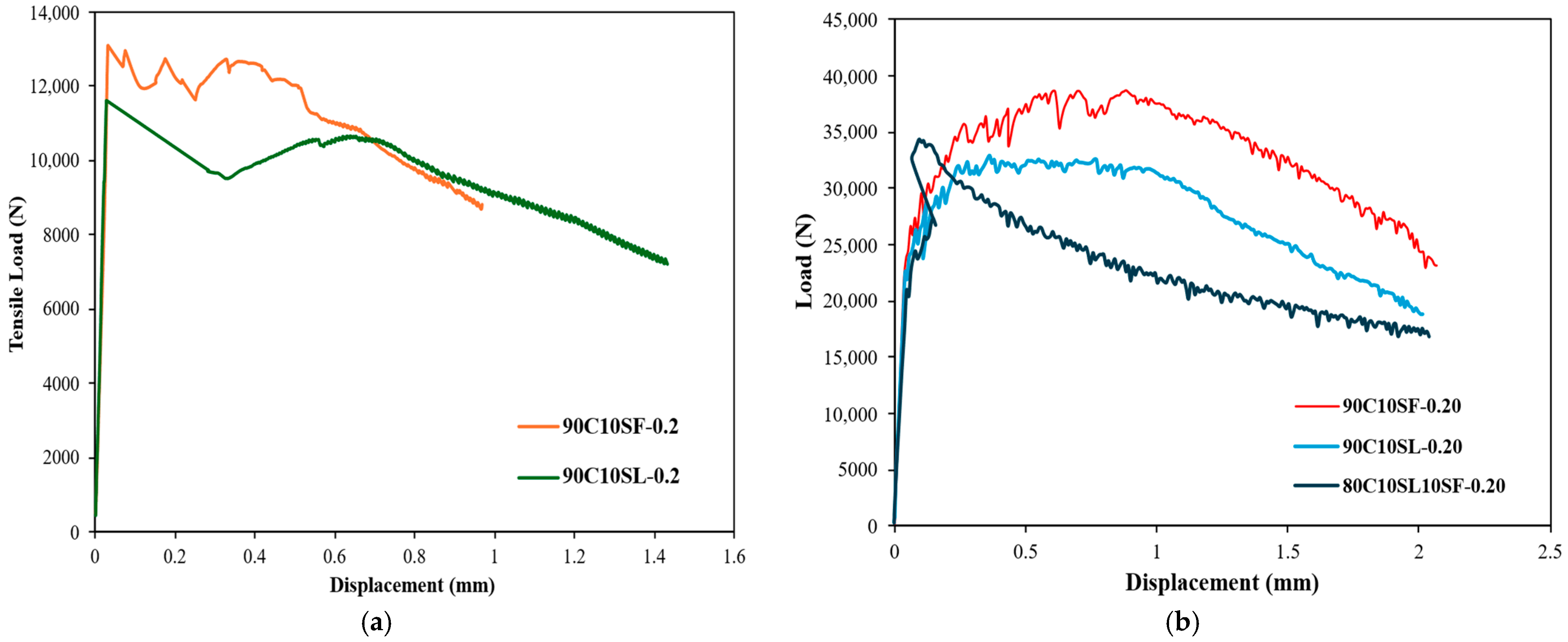 - Wu, J.D.; Guo, L.P.; Fei, X.P.; Lyu, B.C.; Chen, B. Synergistic Effects of Silica Fume and Slag on the Microstructure and Mechanical Behaviors of Ultra-High-Strength and High-Ductility Cementitious Composites. Constr. Build. Mater. 2023, 367, 130169. [Google Scholar] [CrossRef]