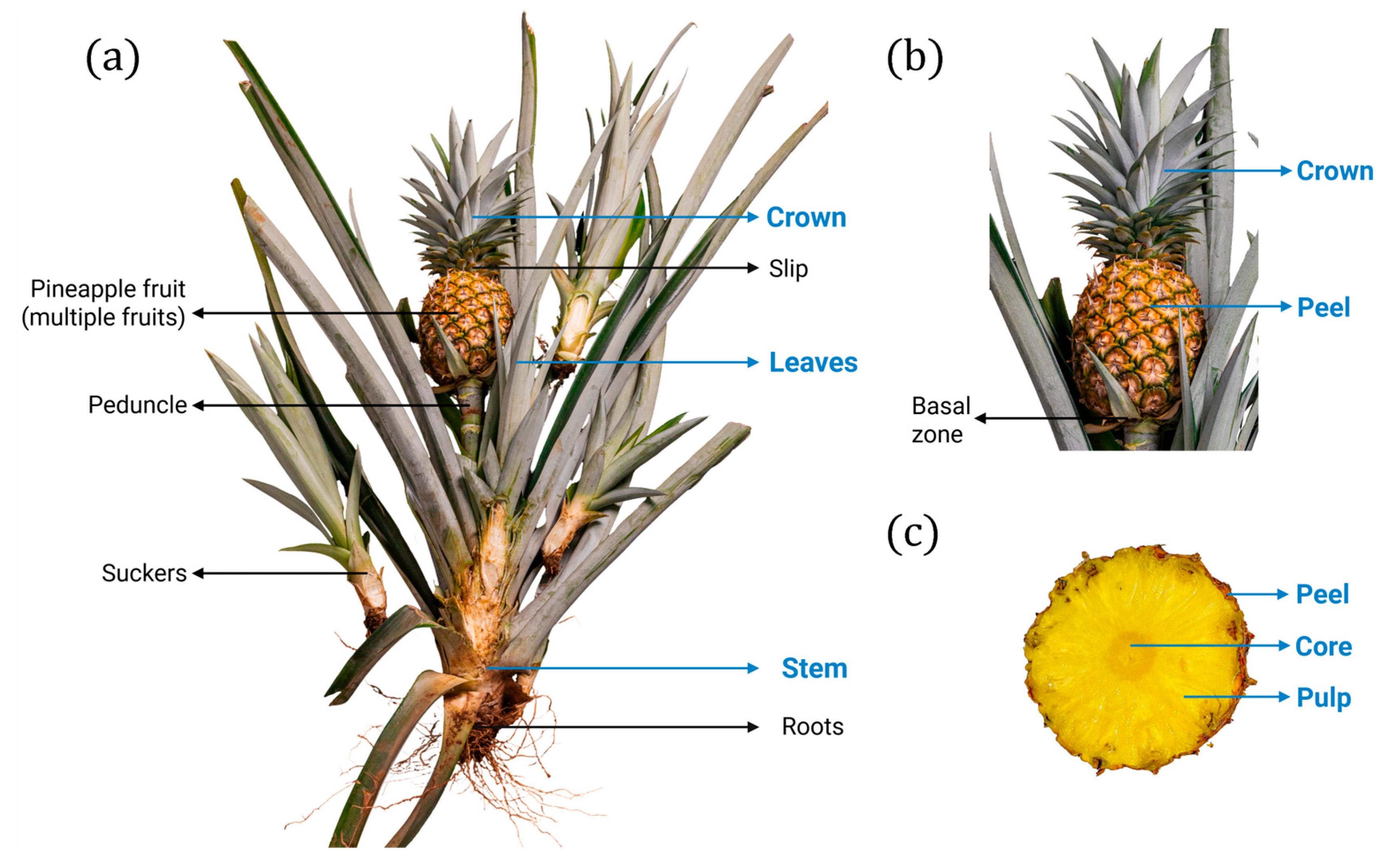 - Chaudhary, S.; Singh, B. Pineapple by-products utilization: Progress towards the circular economy. Food Humanit. 2024, 2, 100243. [Google Scholar] [CrossRef]