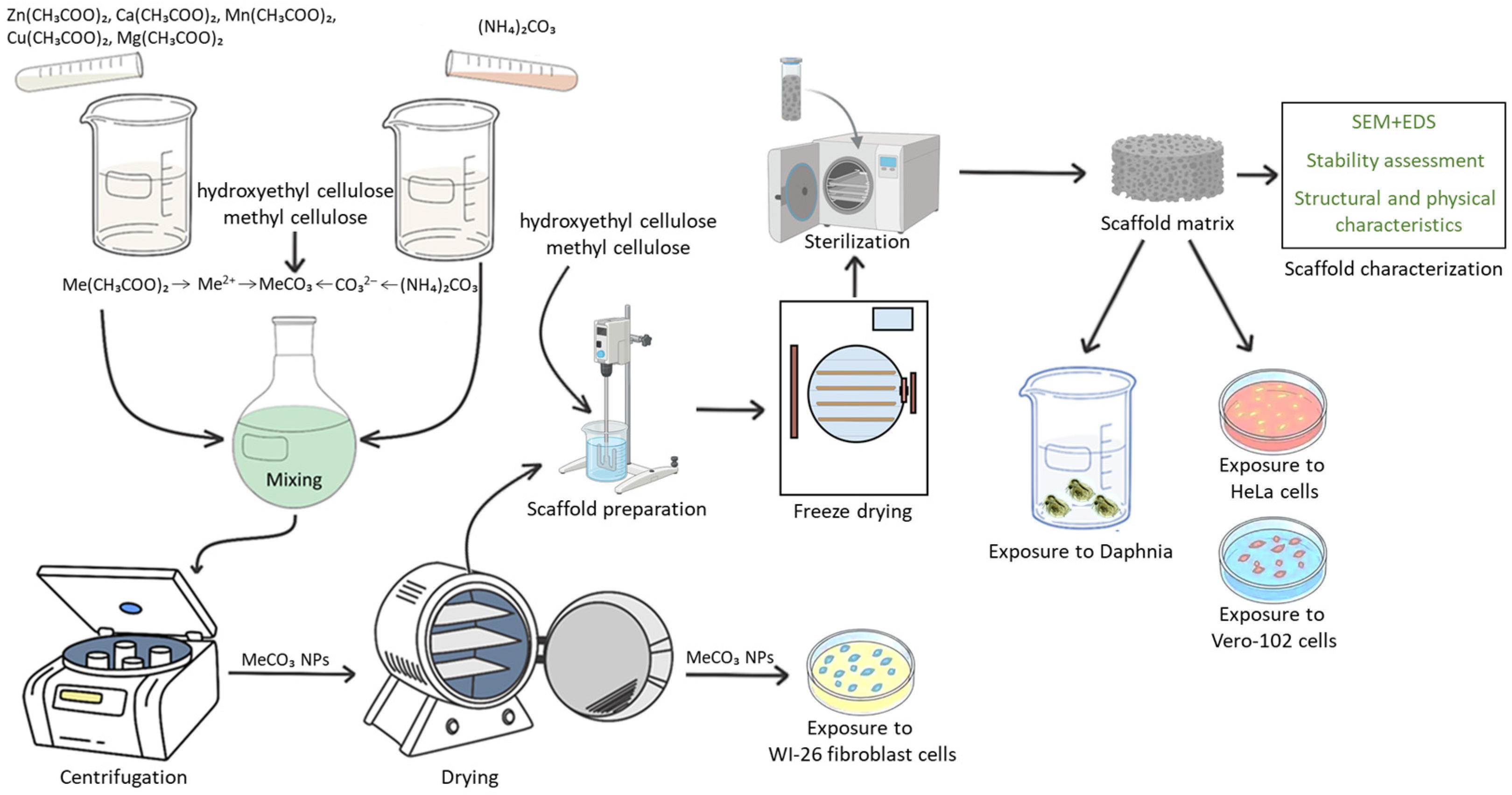 Blinov, A.; Rekhman, Z.; Sizonenko, M.; Askerova, A.; Golik, D.; Serov, A.M.; Bocharov, N.; Rusev, N.; Kuznetsov, E.; Ryazantsev, I.; et al. Biopolymer-Based Nanocomposite Scaffolds: Methyl Cellulose and Hydroxyethyl Cellulose Matrix Enhanced with Osteotropic Metal Carbonate Nanoparticles (Ca, Zn, Mg, Cu, Mn) for Potential Bone Regeneration. J. Compos. Sci. 2025, 9, 655. https://doi.org/10.3390/jcs9120655